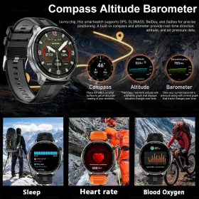 MIL-STD Professional GPS Outdoor Smart Watch Men Flashlight Compass Waterproof Military Sport Tracker Bluetooth Call Smartwatch