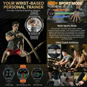 T-REX 3 Military Smartwatch Men 1100mAh Ultra Durable Battery SmartWatch 10ATM Waterproof HD Call 170+ Sport Mode LED Flashlight