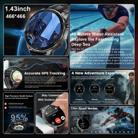 NEW GPS Offline Maps Smart Watch 1.43″ AMOLED Military Sports Smartwatch 4GB Memory Video Player 30m Swim Waterproof Bracelet