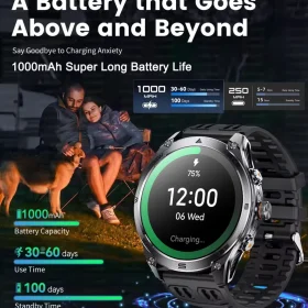 Robust military smart watch 1400Mah battery fitness tracking 10ATM waterproof tactical sports flashlight men’s phone watch