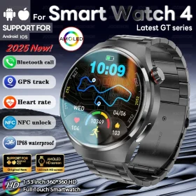 2025 New Watch 4 GT Series Smart Watch Men AMOLED Screen Heart Rate Health Monitoring Bluetooth Call Business Smartwatch Man