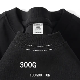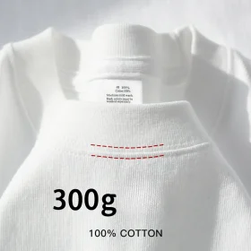 Beige 300g Heavyweight Cotton Short Sleeved T-shirt Summer Round Neck Loose and Base Shirt for Men Women Basic Tee