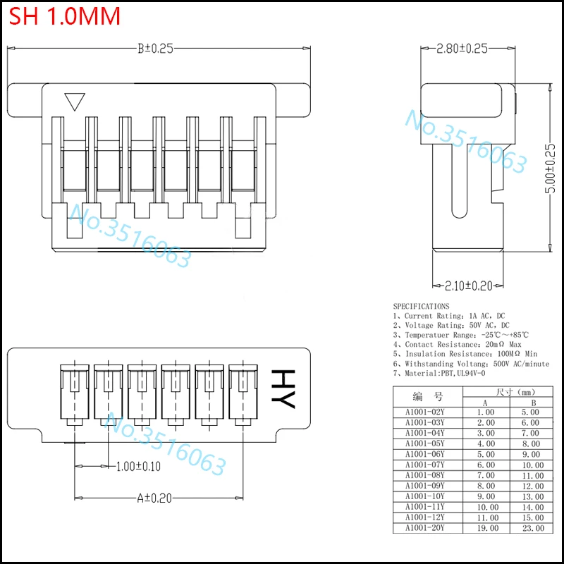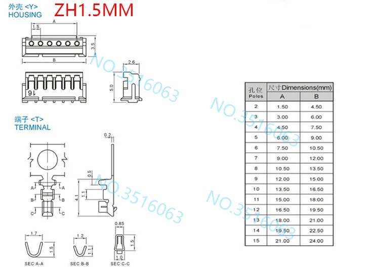 pitch:1.0mm/1.25mm/1.5mm/2.0mm/2.54mm