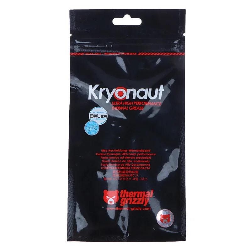 Kryonaut uses a special structure, which halts the drying out process at temperatures of up to 80° Celsius. This structure is also responsible for the nano-aluminum- and zinc-oxide-parts included in the grease to compound optimally, to compensate for unevenness of the component (i.e. the CPU) or the heat sink, thus guaranteeing remarkable heat transfer.