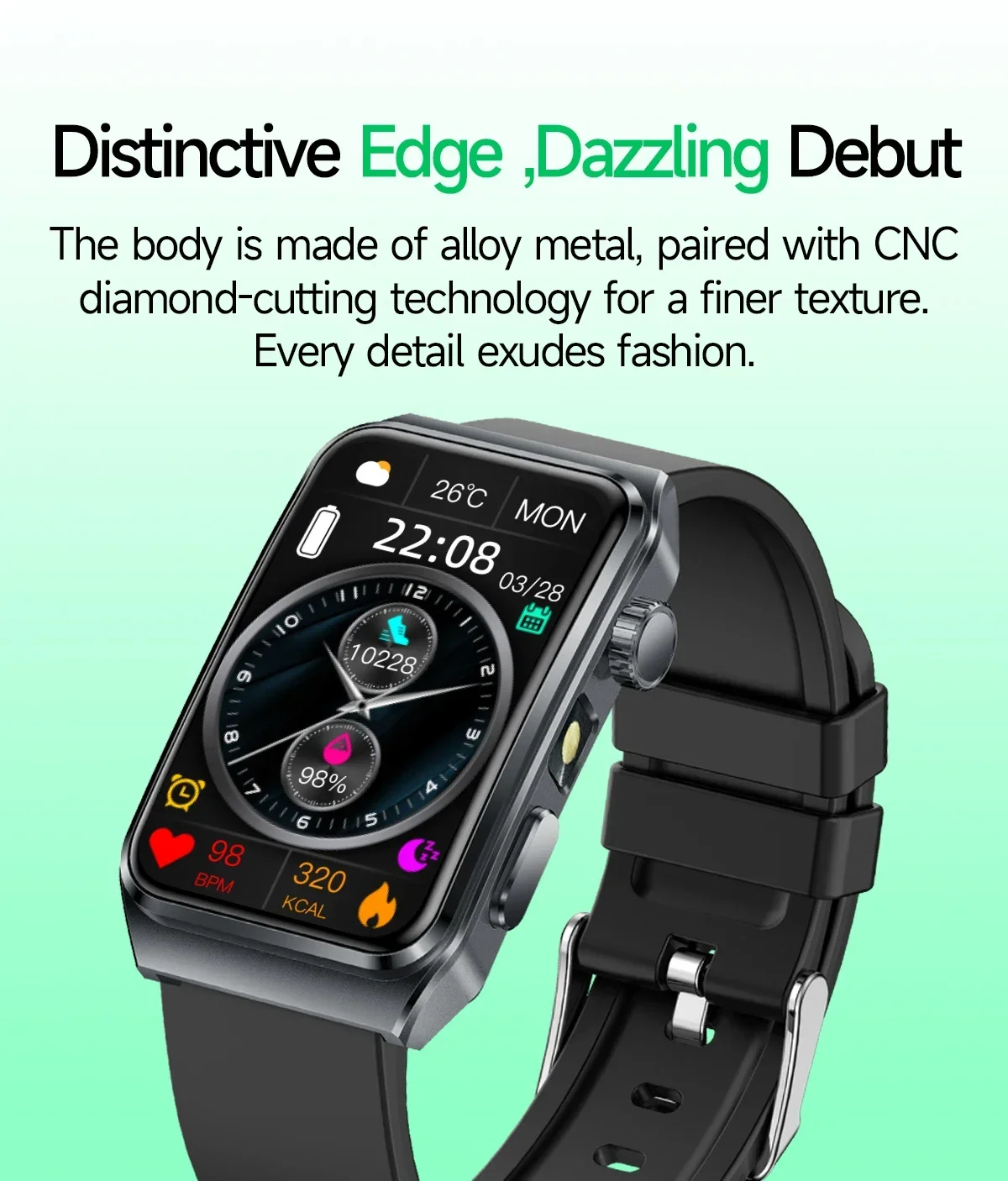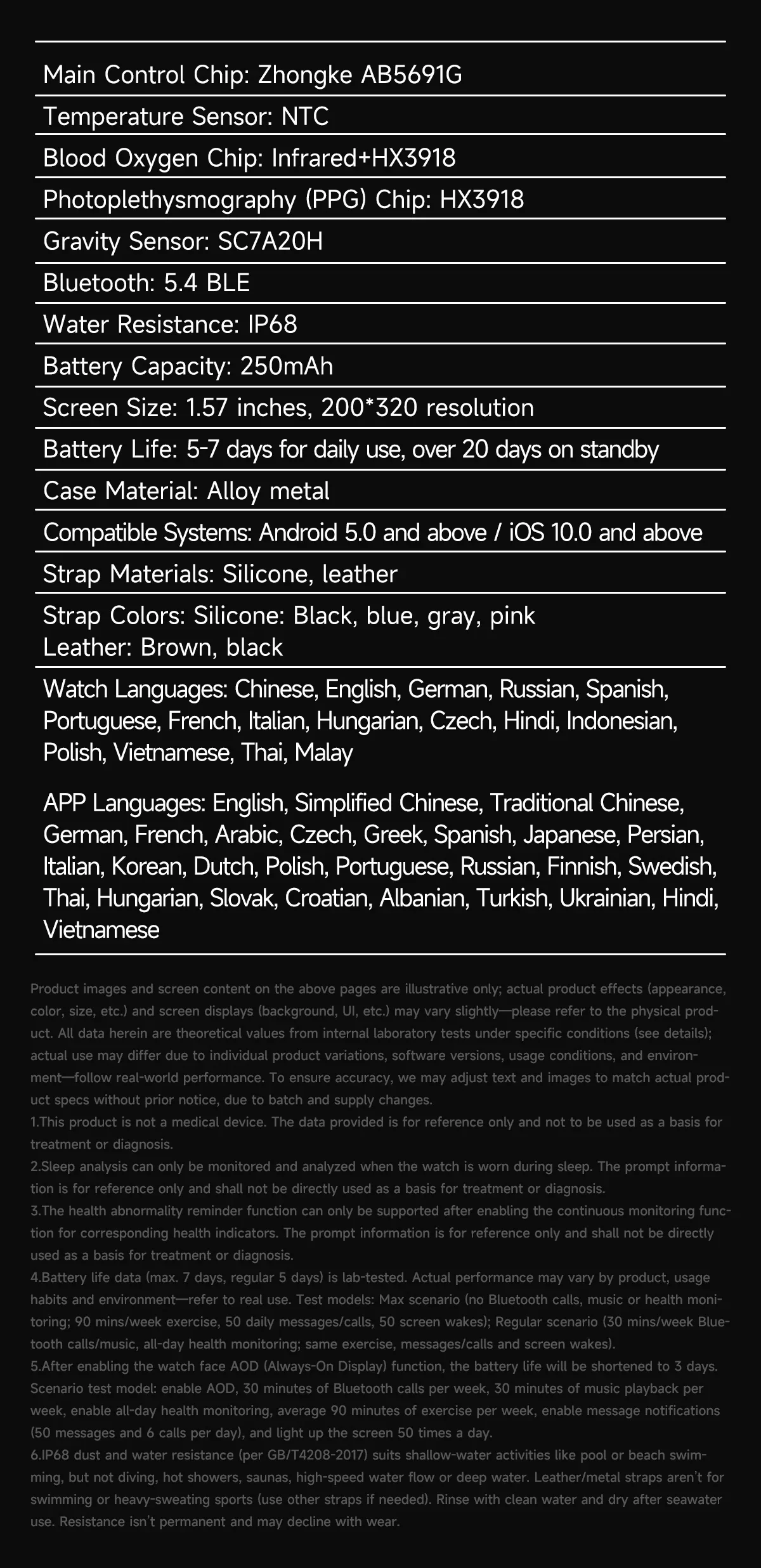 - Metrics measured: Heart Rate Monitor,Women’s Health Monitoring,Other,Blood Oxygen Monitor,Sleep Monitor,Blood Pressure Monitor,Body Temperature Monitor,Stress Monitor