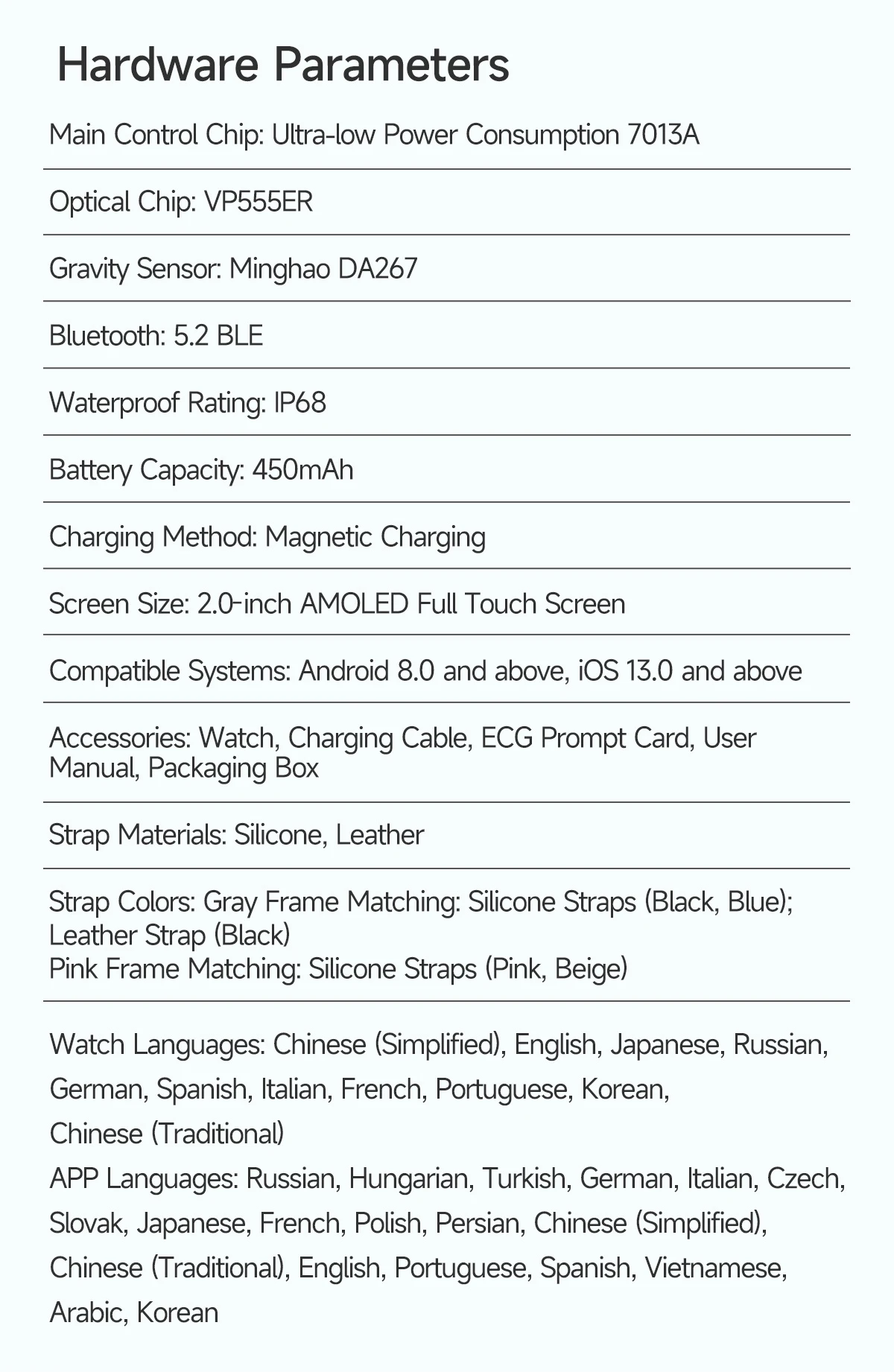 - CPU Model: ECG detection+micro physical examination intelligent Health watch