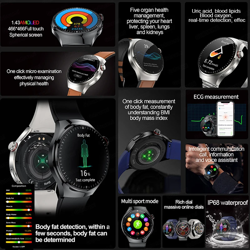 2026New For Man Smartwatches Outdoor Sport Smart Watch Men 1.43“HD AMOLED Screen ECG physical examination BT5.0 Call smartwatch