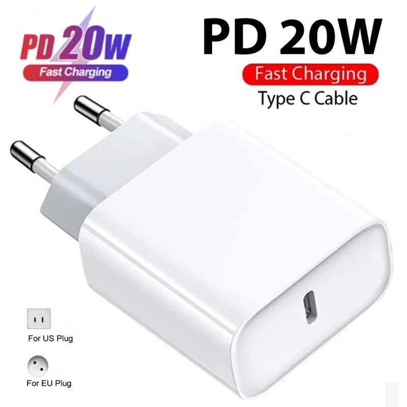 20W PD USB-C Power Adapter Fast Charger For iPhone 14 13 12 11 Pro Max USB Type C Wall Quick Charging X XS XR 7 8 6 Plus Cable