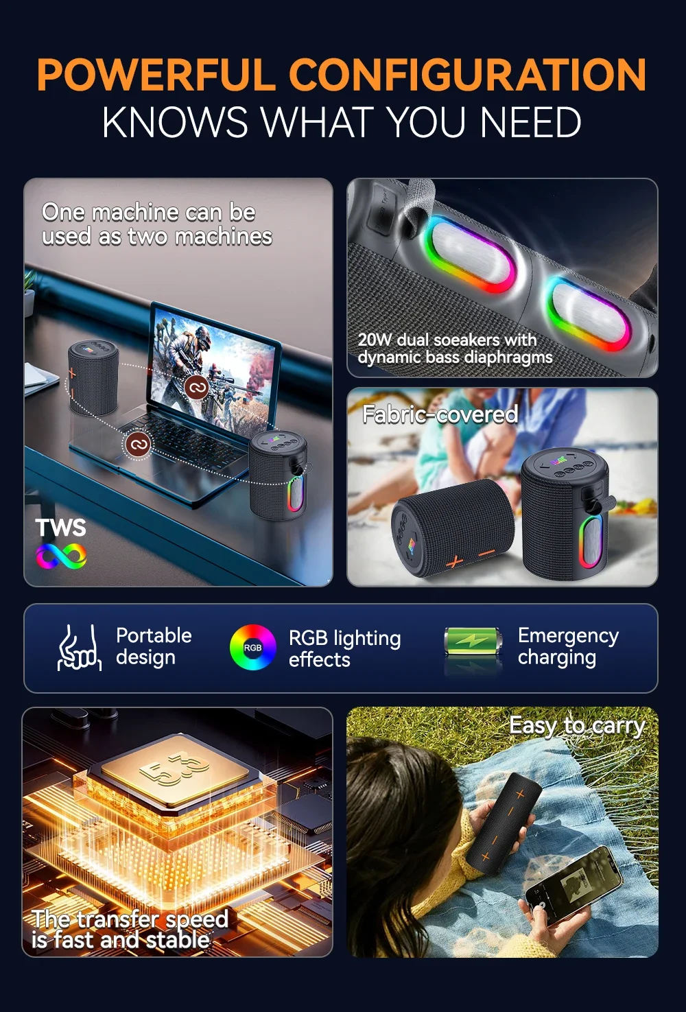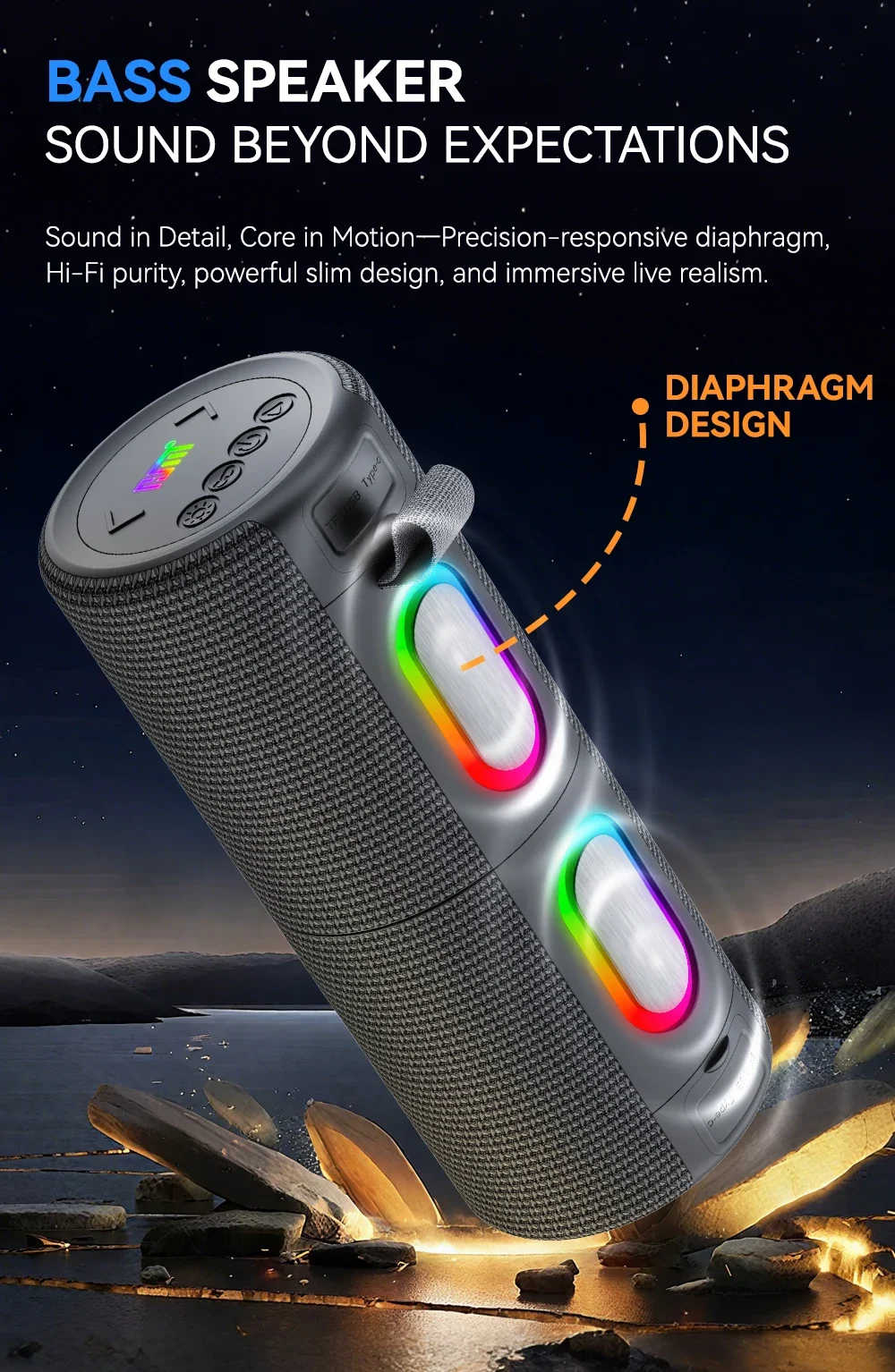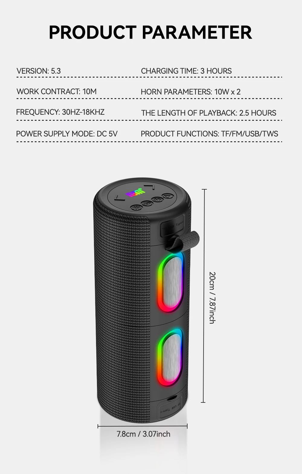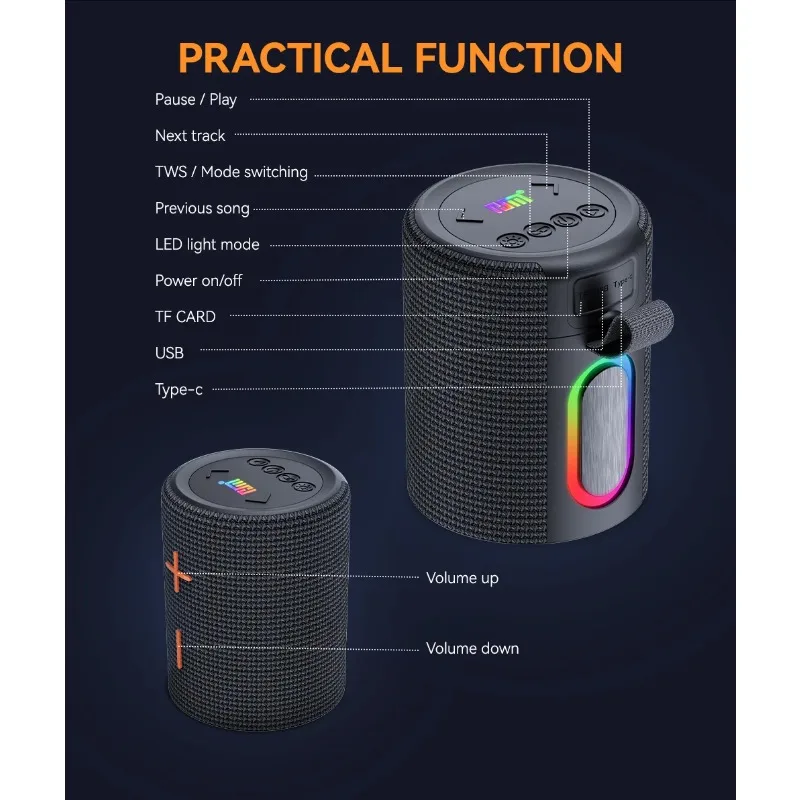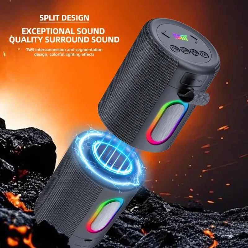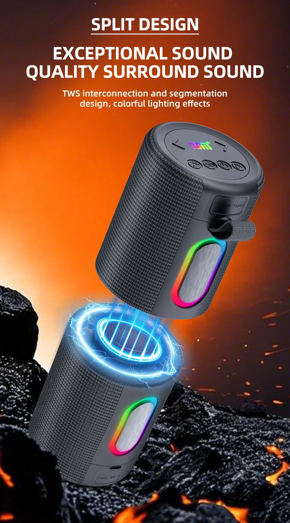 This speaker boasts a multifunctional split design, combining audio playback with colorful lights, perfect for enhancing your home parties or outdoor sports with vibrant ambiance.