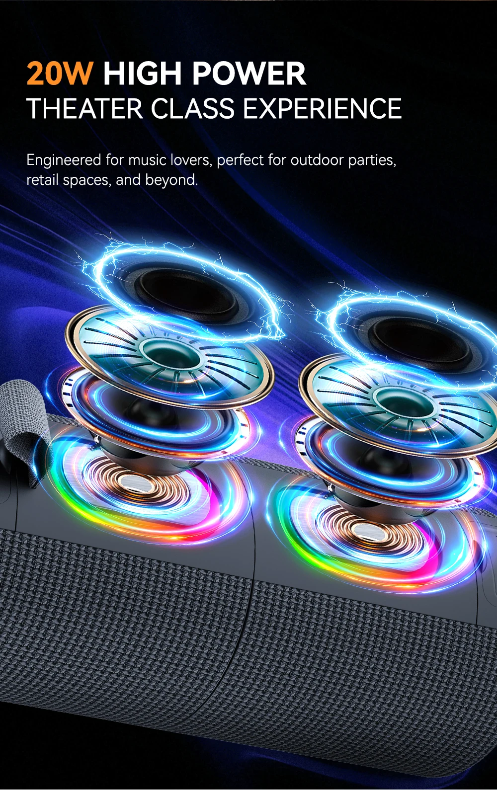 Equipped with Bluetooth 5.0, this speaker ensures stable and quick pairing, providing a seamless audio streaming experience without the hassle of tangled wires.