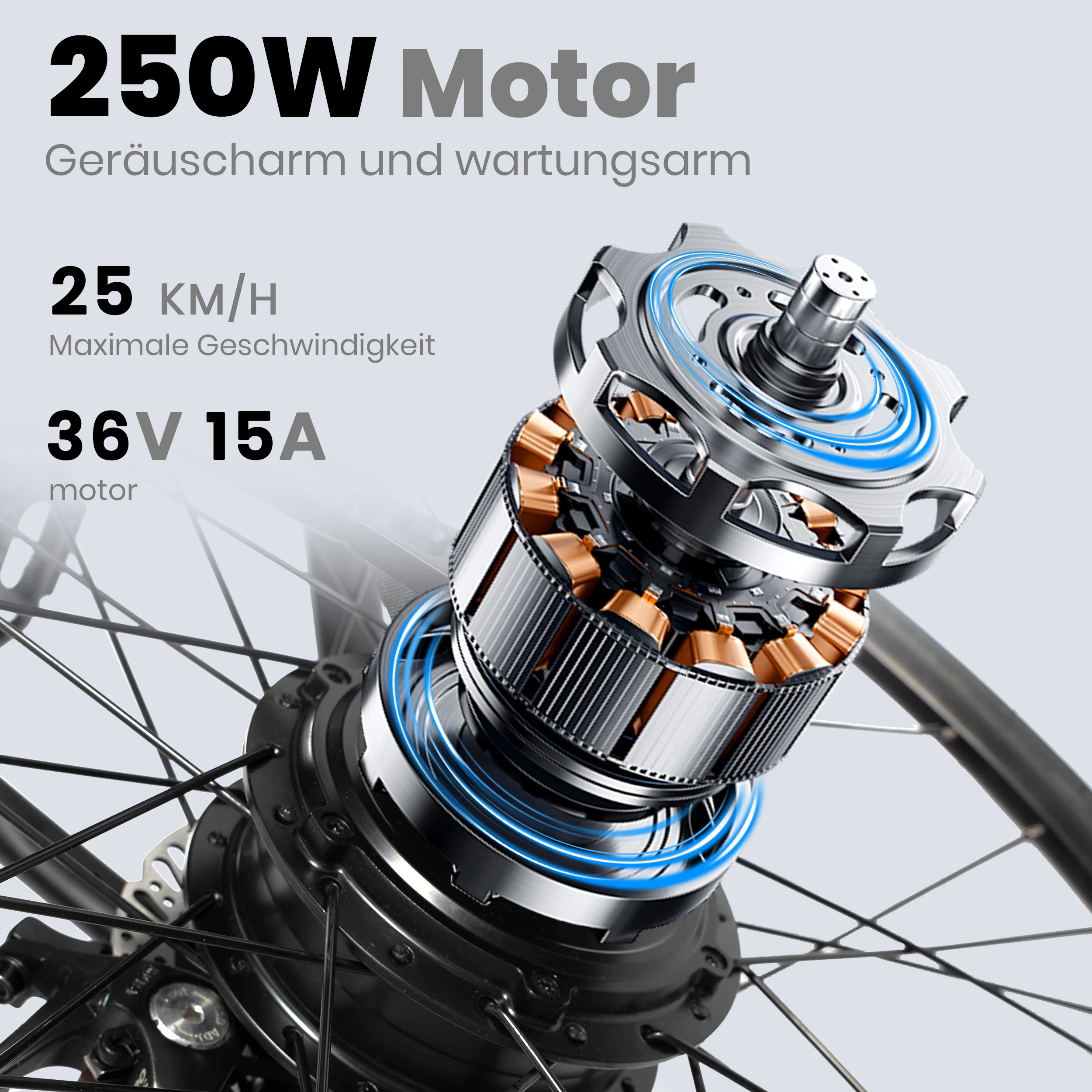 This 28-inch city bike is specially designed for short urban rides. The 250W rear hub motor and 252Wh integrated battery provide the perfect level of electric assistance. With its lightweight 700C aluminum frame, the e-bike weighs only around 20 kg – stable yet agile, ideal for quick navigation through city streets.