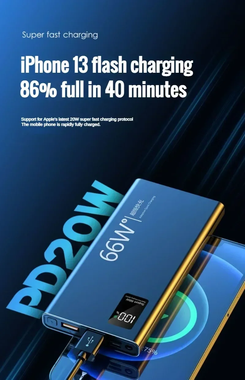 80000mAh Power Bank 120W Super Fast Charging 100% Sufficient Capacity Portable Battery Charger Digital Display For iPhone Xiaomi