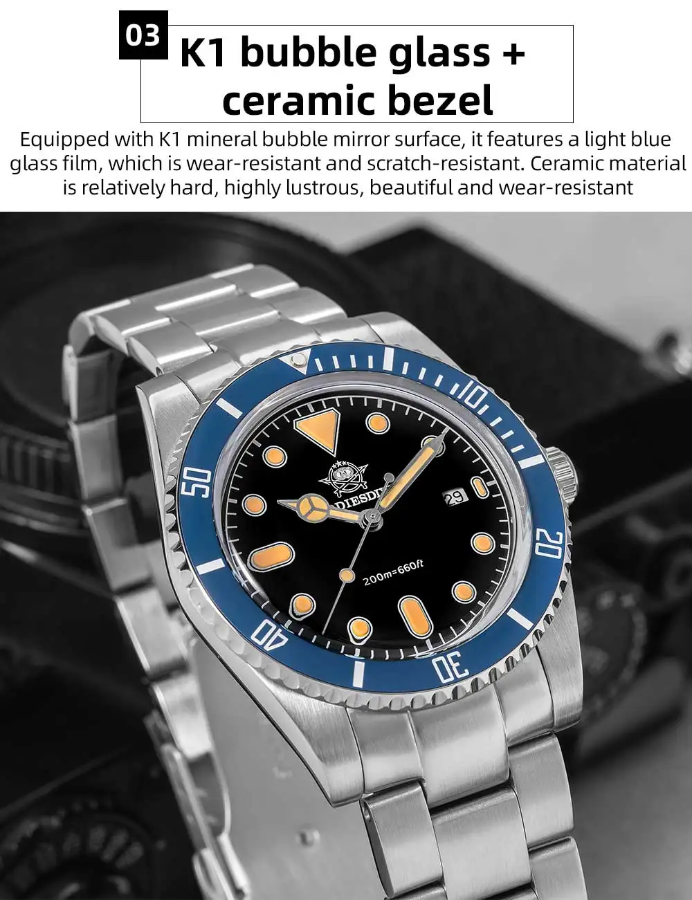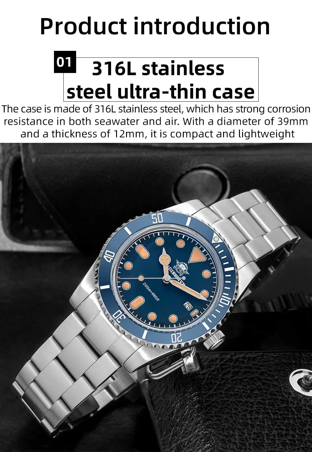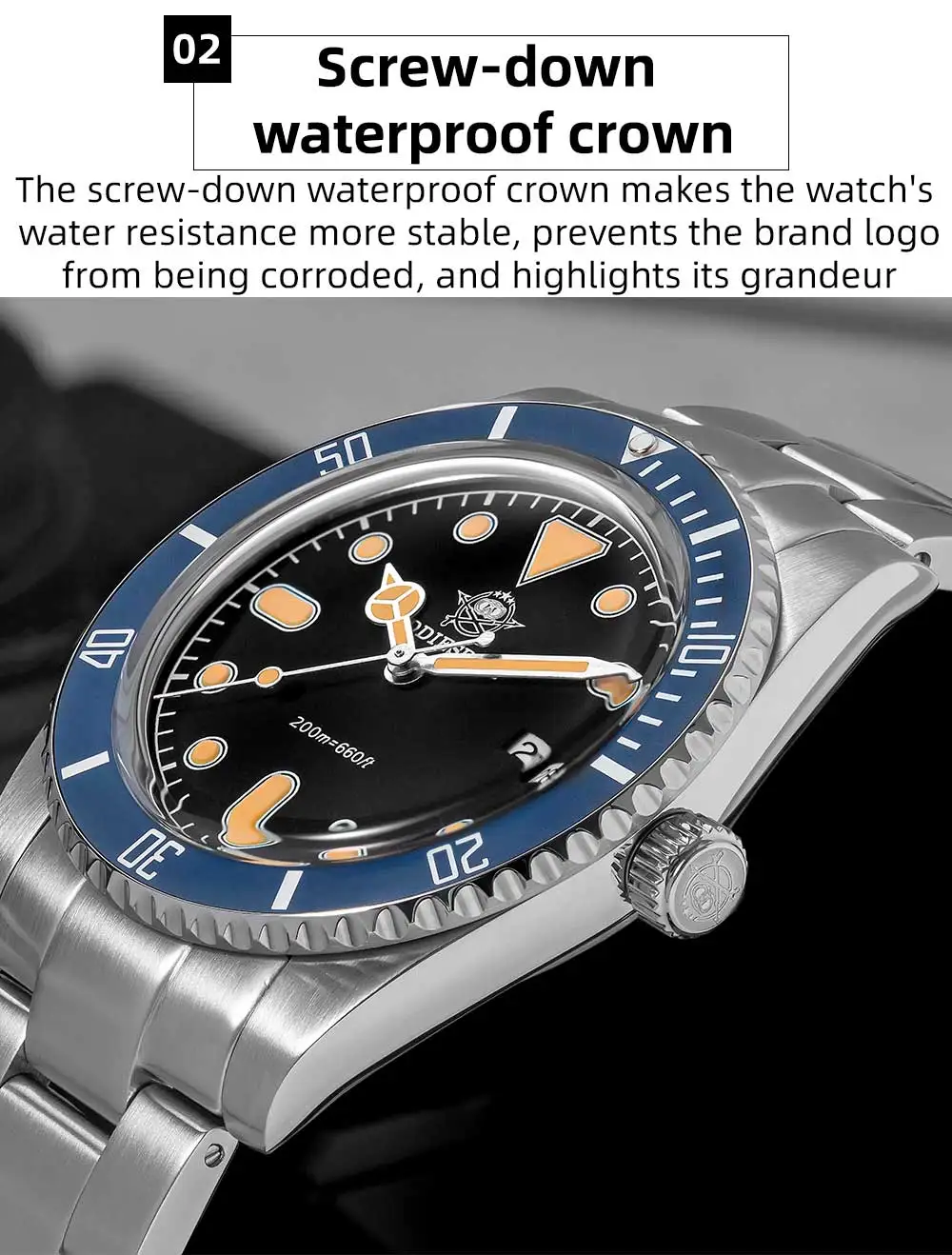 - Feature: Screw crown,Luminous,Complete Calendar,DIVER,Water-Resistance,swim