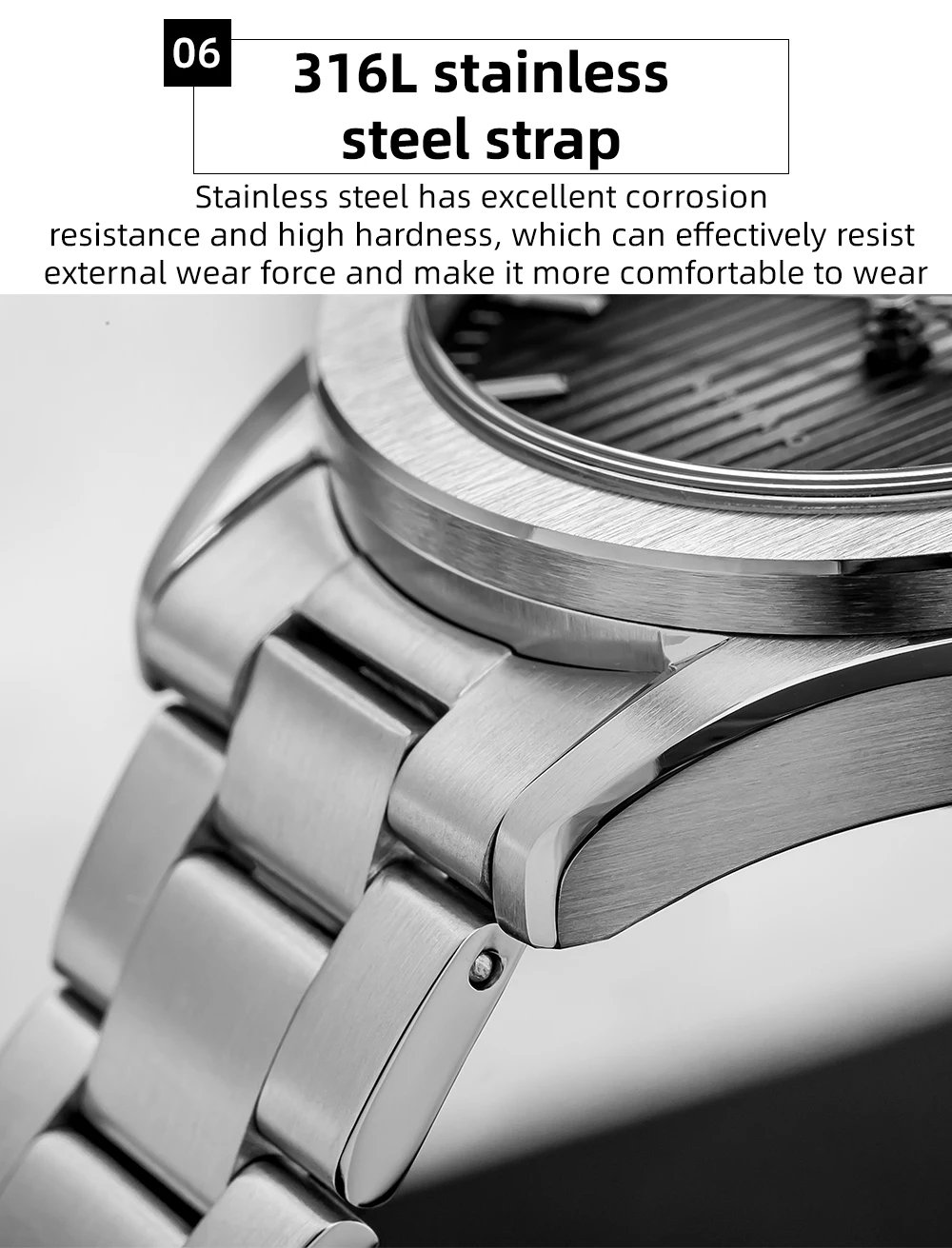 Strap material: 316L stainless steel