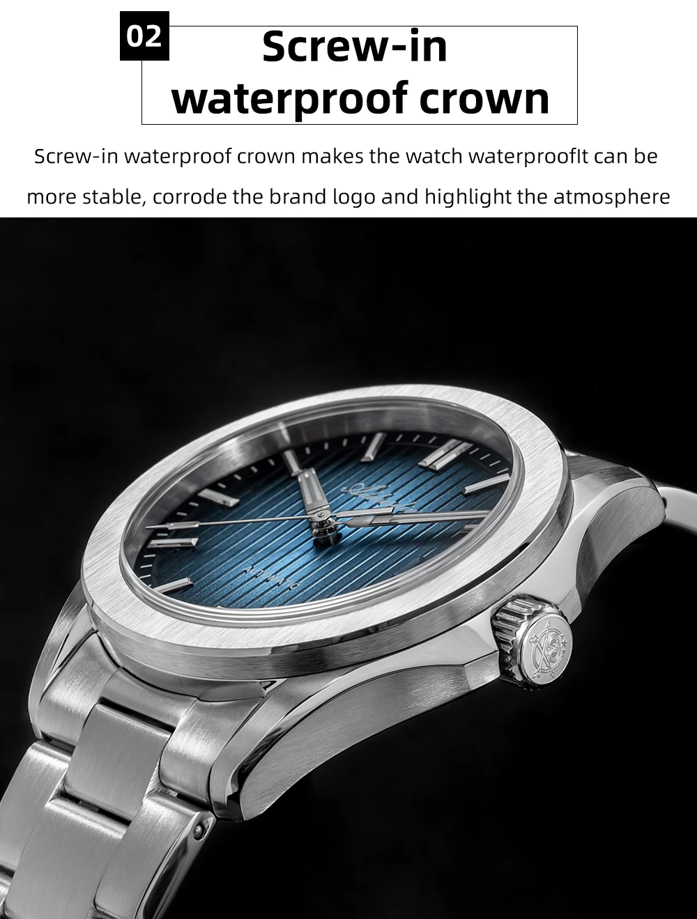 Crown type: screw-in screw-down crown