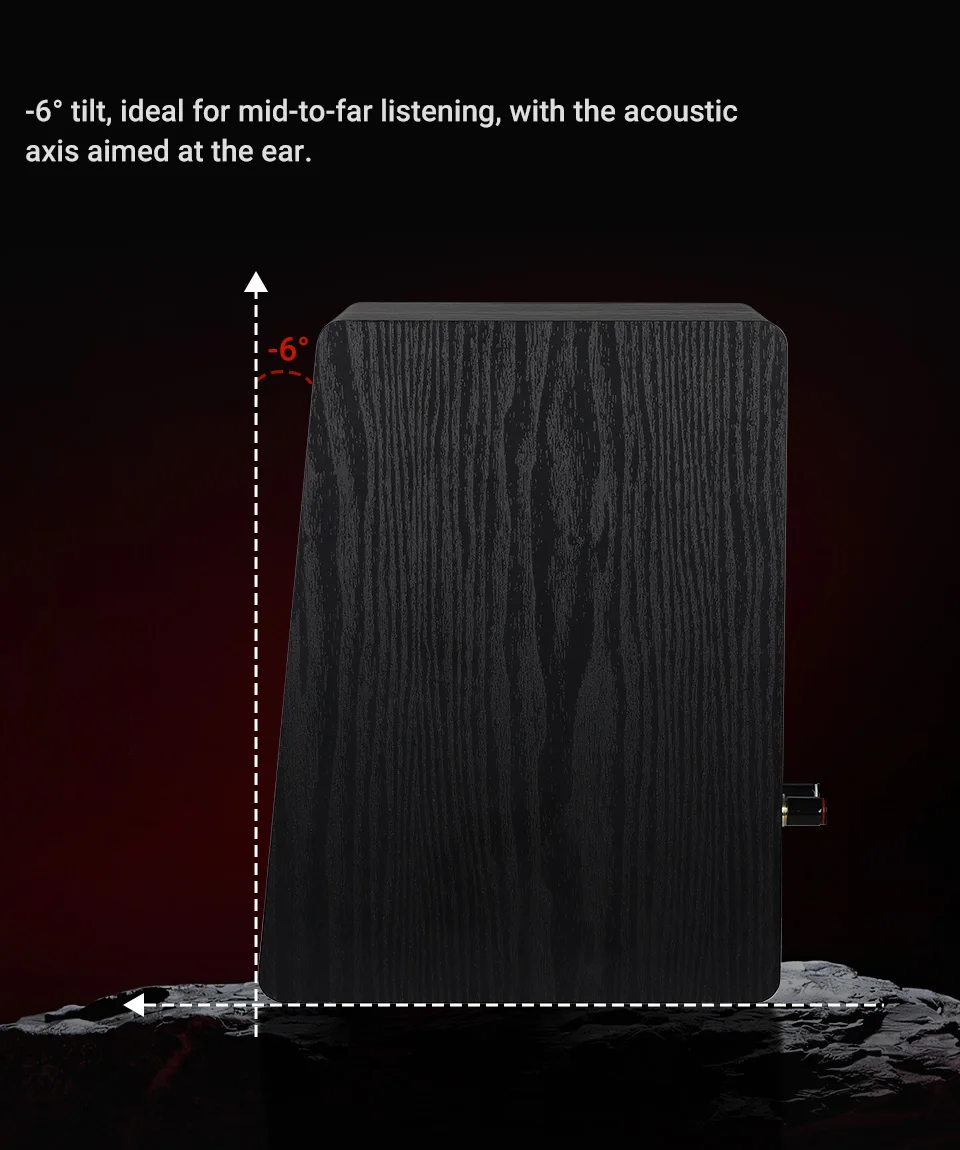 Soundstage focus – The tilt projects sound energy more precisely into the optimal listening zone.