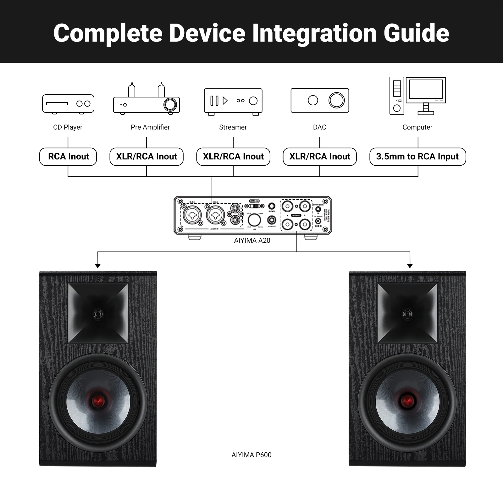 The P600 was born from the overall design philosophy of the AIYIMA D20, T20, and A20 HiFi system.