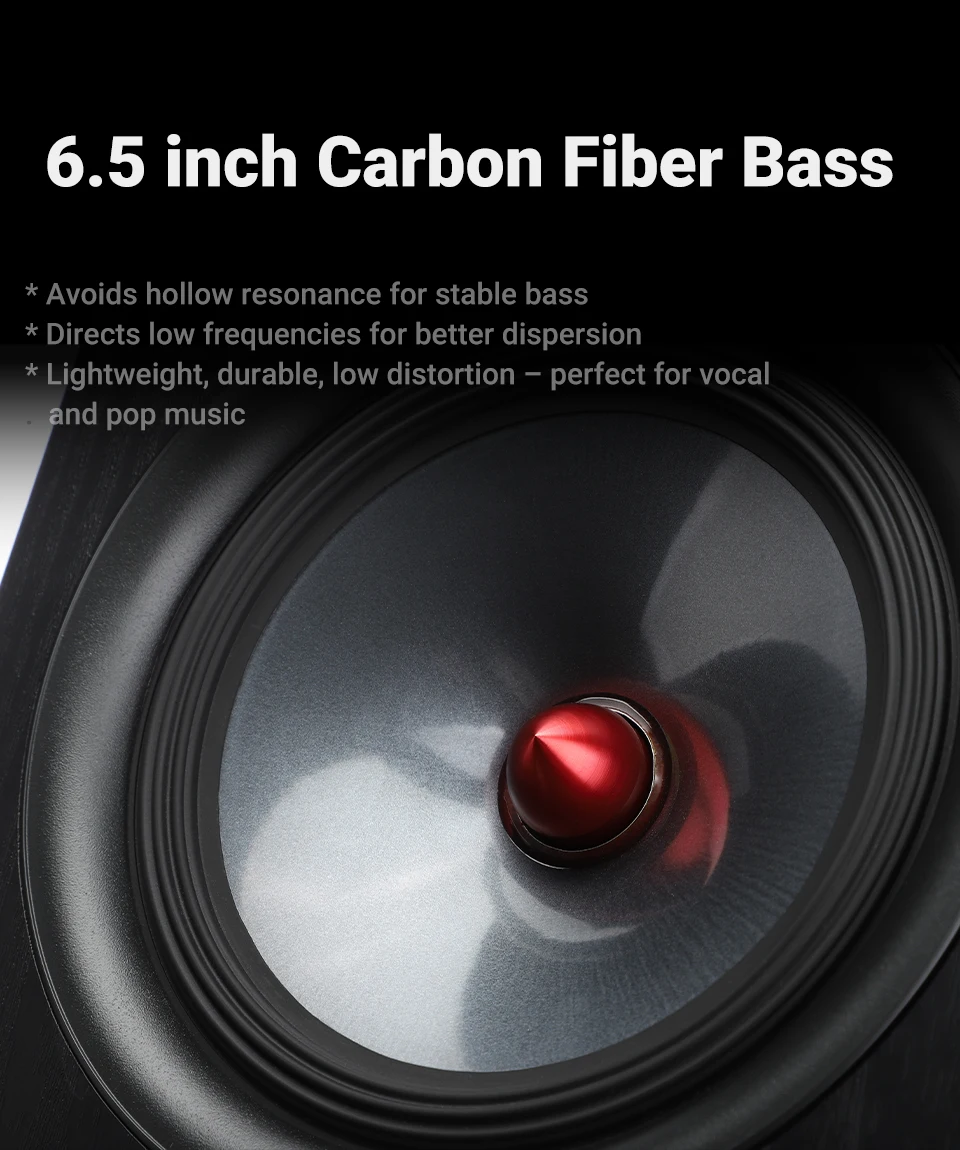 - 2: Carbon Fiber Woofer with Deep 30Hz Bass Extension