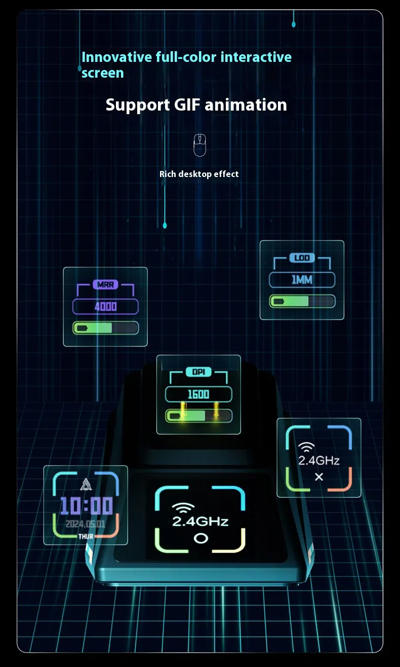 AJ179 / AJ159 APEX comes with an innovative magnetic charging dock with an RGB color display. This display not only shows the date and time, but can also be personalized with animated GIFs, adding a unique and vibrant touch to your gaming setup.
