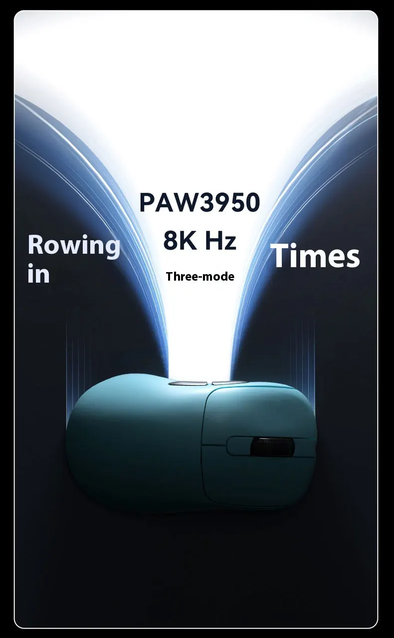 This mouse supports seamless switching between Bluetooth, 2.4GHz wireless and wired connections. Uniquely, it provides 8000Hz polling rate in wireless mode and 1000Hz in wired mode with ultra-low response time – 0.125ms – eight times faster than standard gaming mice, ensuring instant feedback and smoother cursor movement.