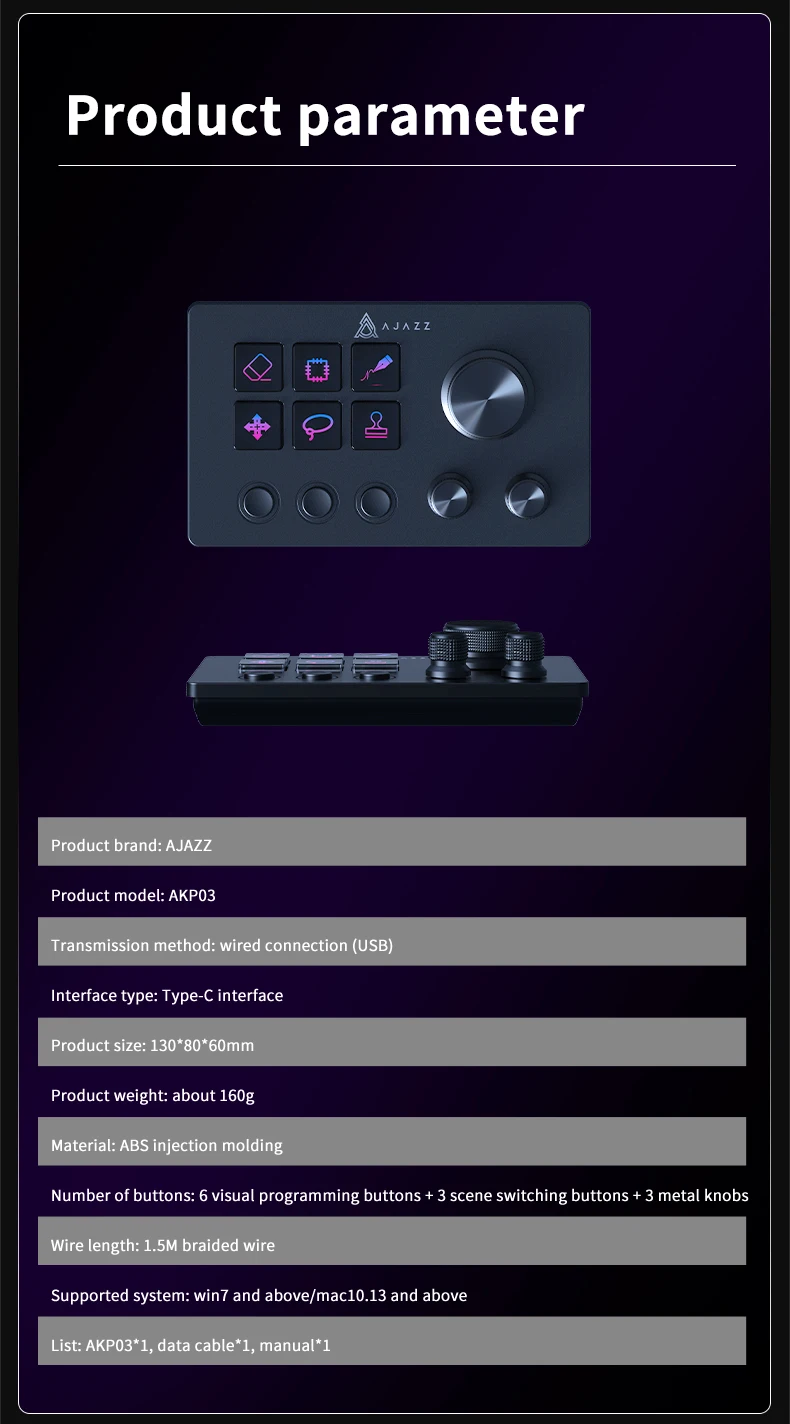 NEW Ajazz AKP03E Multifunctional Console Panel Desktop Assistente Customizable Button Mini Keyboard For Multiple Scenario