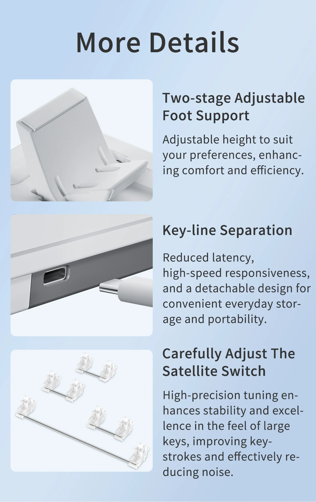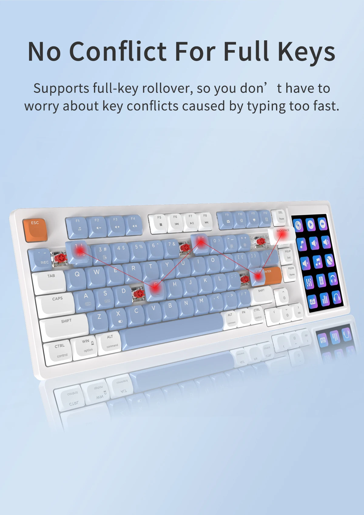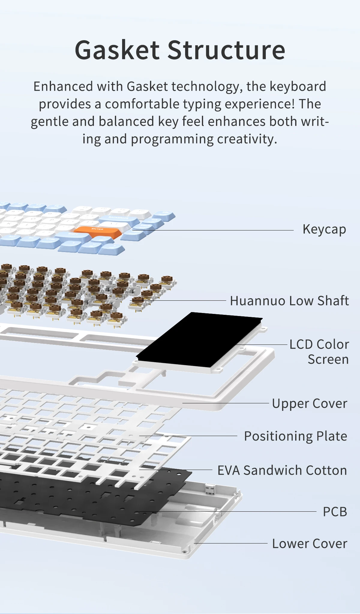 Keycap Material: Low Shaft Height ABS Material(Three Colors)