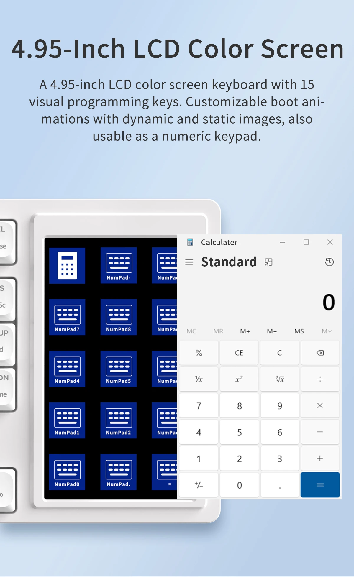 Innovative Touch Screen: Be the first to experience the fusion of low-profile mechanical keys with a spacious 4.33” LCD touch screen. With 15 customizable buttons, effortlessly control your websites, chats, audio, and more with just touch. Navigate seamlessly with personalized icons, making multitasking a breeze.