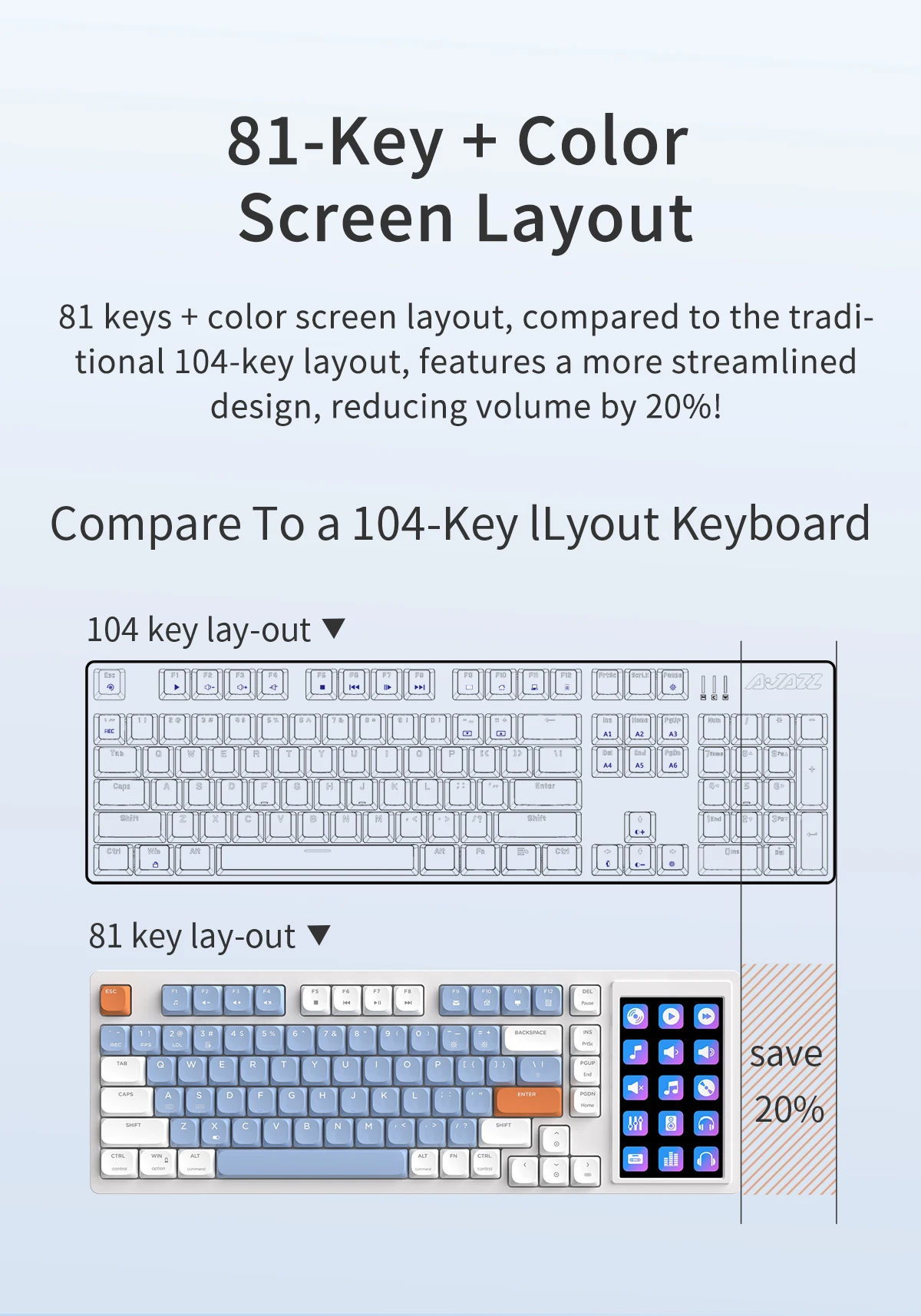 Ajazz AKP815 Wired Gaming Mechanical Keyboard RGB 81 Keys Color Screen Layout Gamer Keyboard Custom Gasket for Pc Laptop