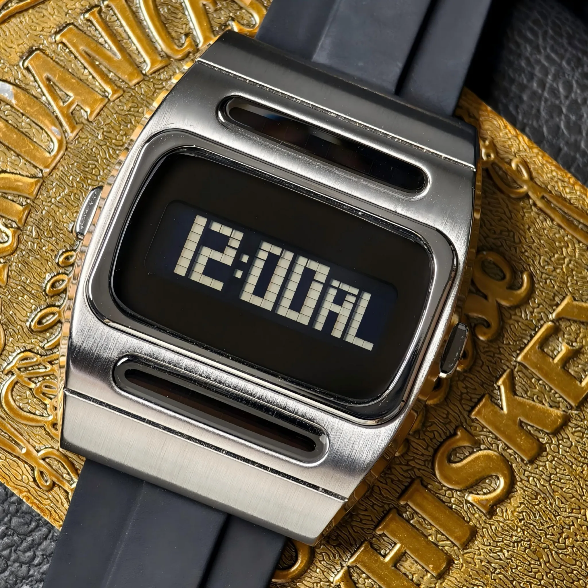 The G100 uses a jump-second digital time display where seconds change in clear, distinct steps, reflecting early electronic modules and strengthening its vintage digital character while keeping the display clean and easy to read.