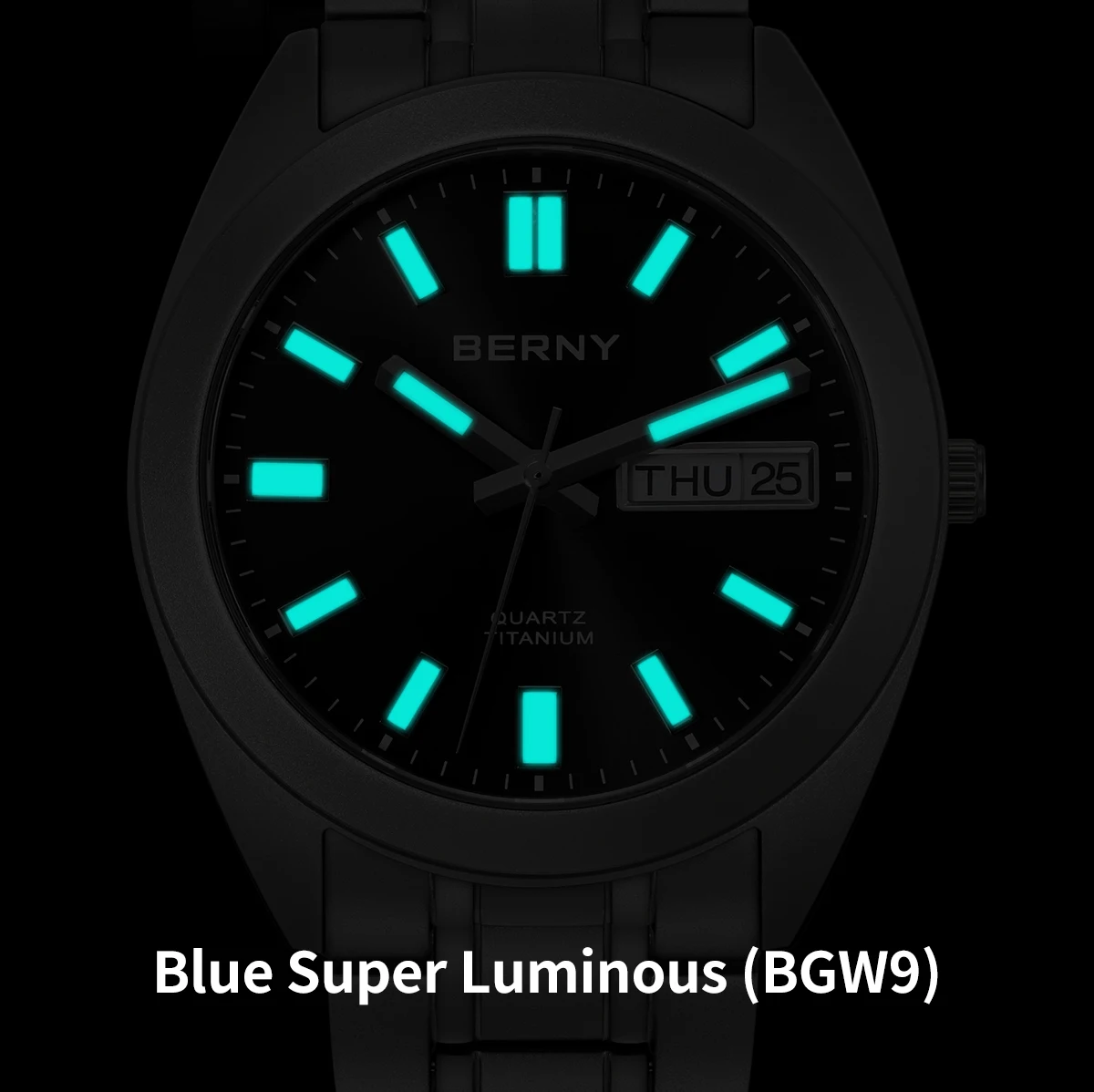 - Dial and Hand light: Blue Super Luminous (BGW9)