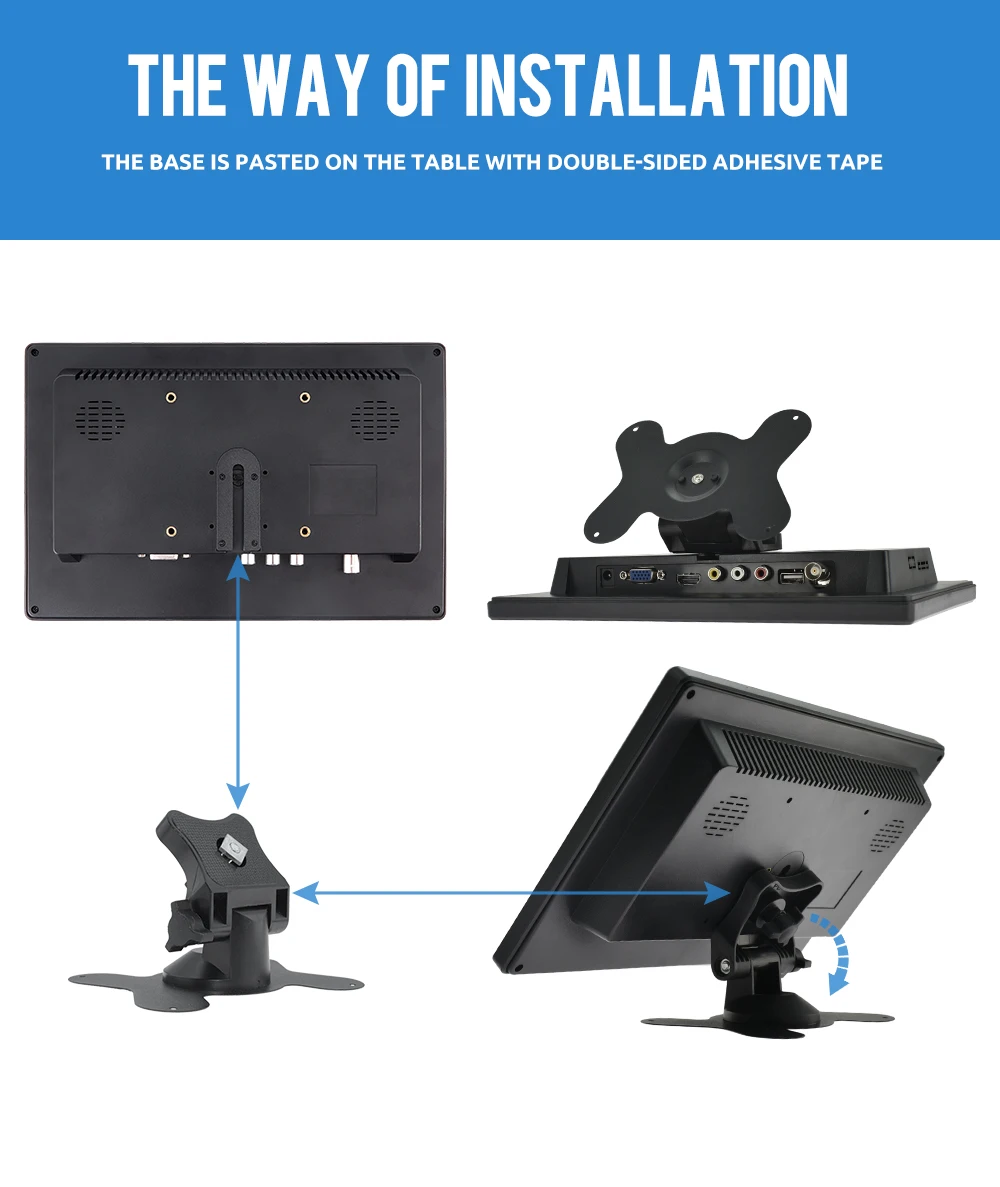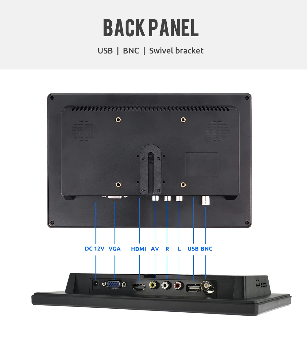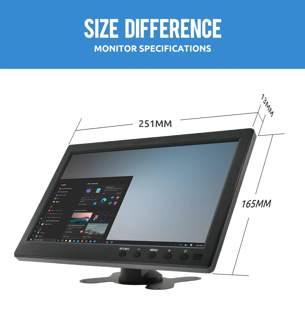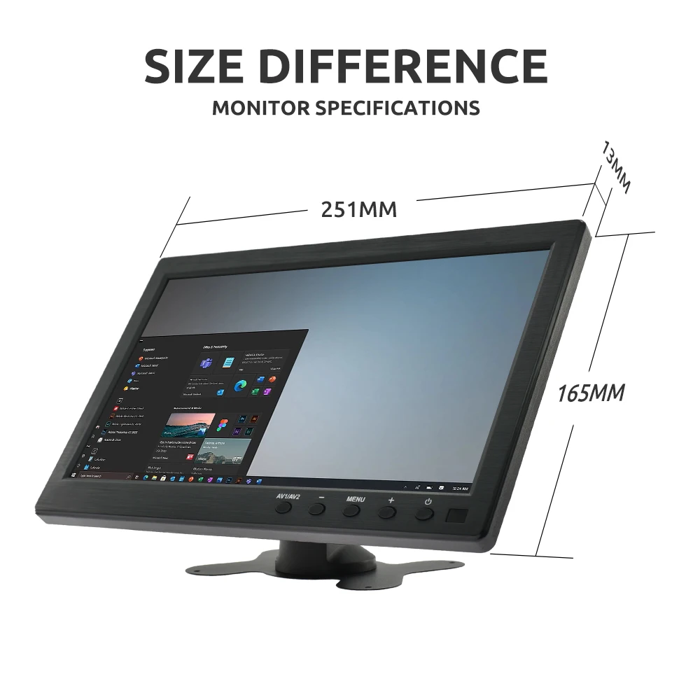 Easy to mount and pack: The stand is perfect allowing you to adjust the viewing angle and rotate the screen to meet all your needs. Portable to carry so that you can enjoy your favorite shows at home, on car or during travel. There are four holes on the back of the monitor, so that you can hang it on the wall as a TV. (screws not included).