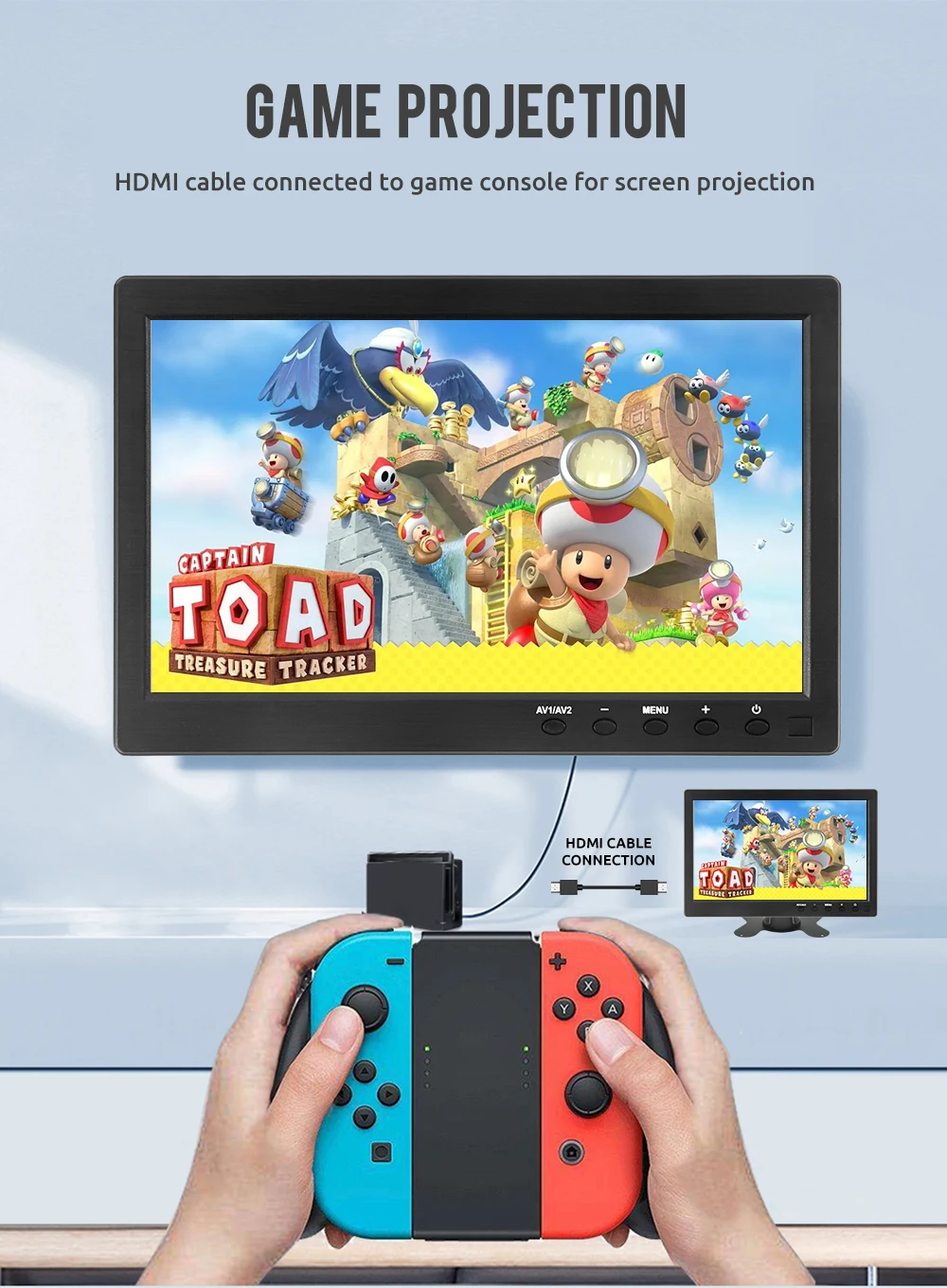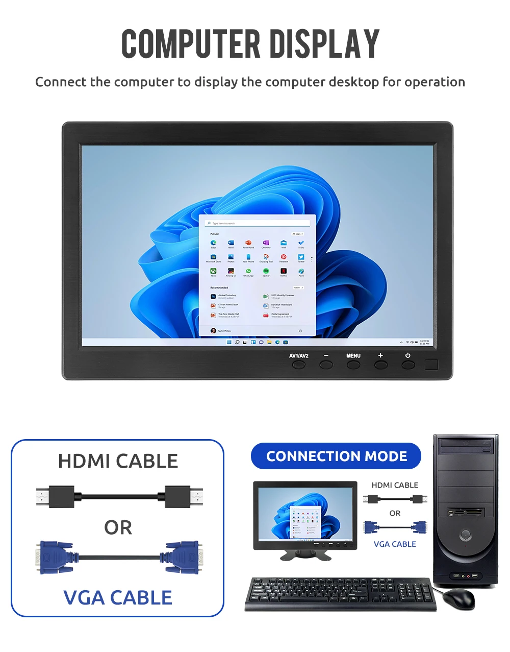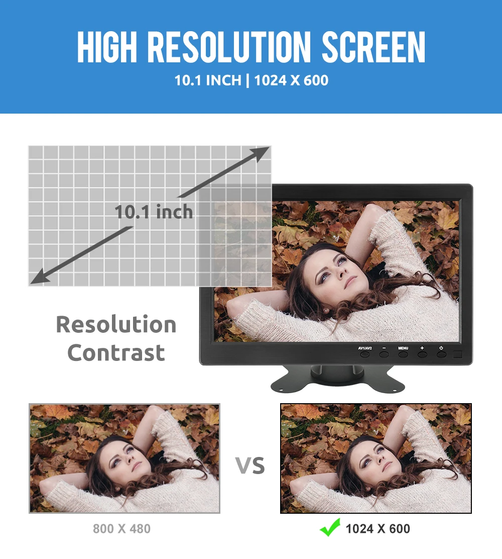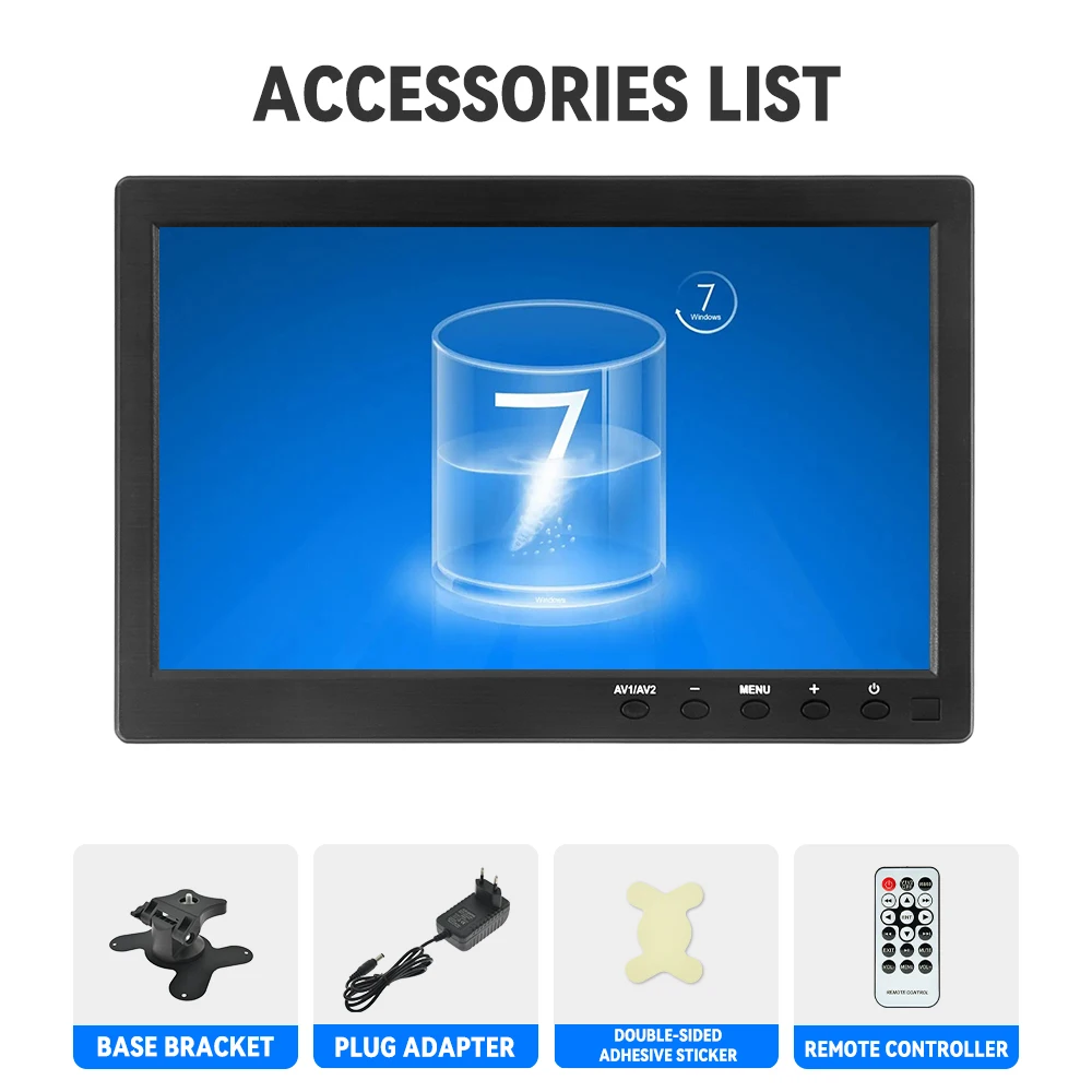 Easy to mount and pack: The stand is perfect allowing you to adjust the viewing angle and rotate the screen to meet all your needs. Portable to carry so that you can enjoy your favorite shows at home, on car or during travel. There are four holes on the back of the monitor, so that you can hang it on the wall as a TV. (screws not included).