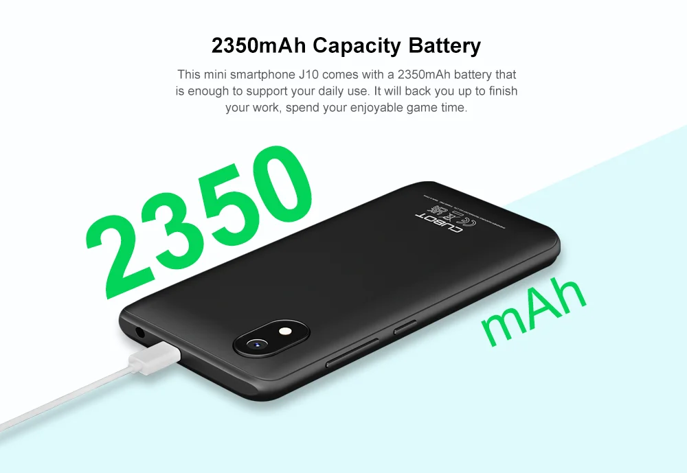 This mini smartphone J10 comes with a 2350mAh battery that is enough to support your daily use. It will back you up to finish your work, spend your enjoyable game time.