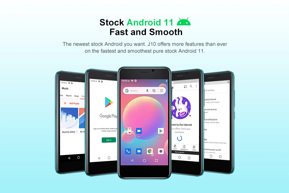 The newest stock Android you want. J10 offers more features than ever on the fastest and smoothest pure stock Android 11.