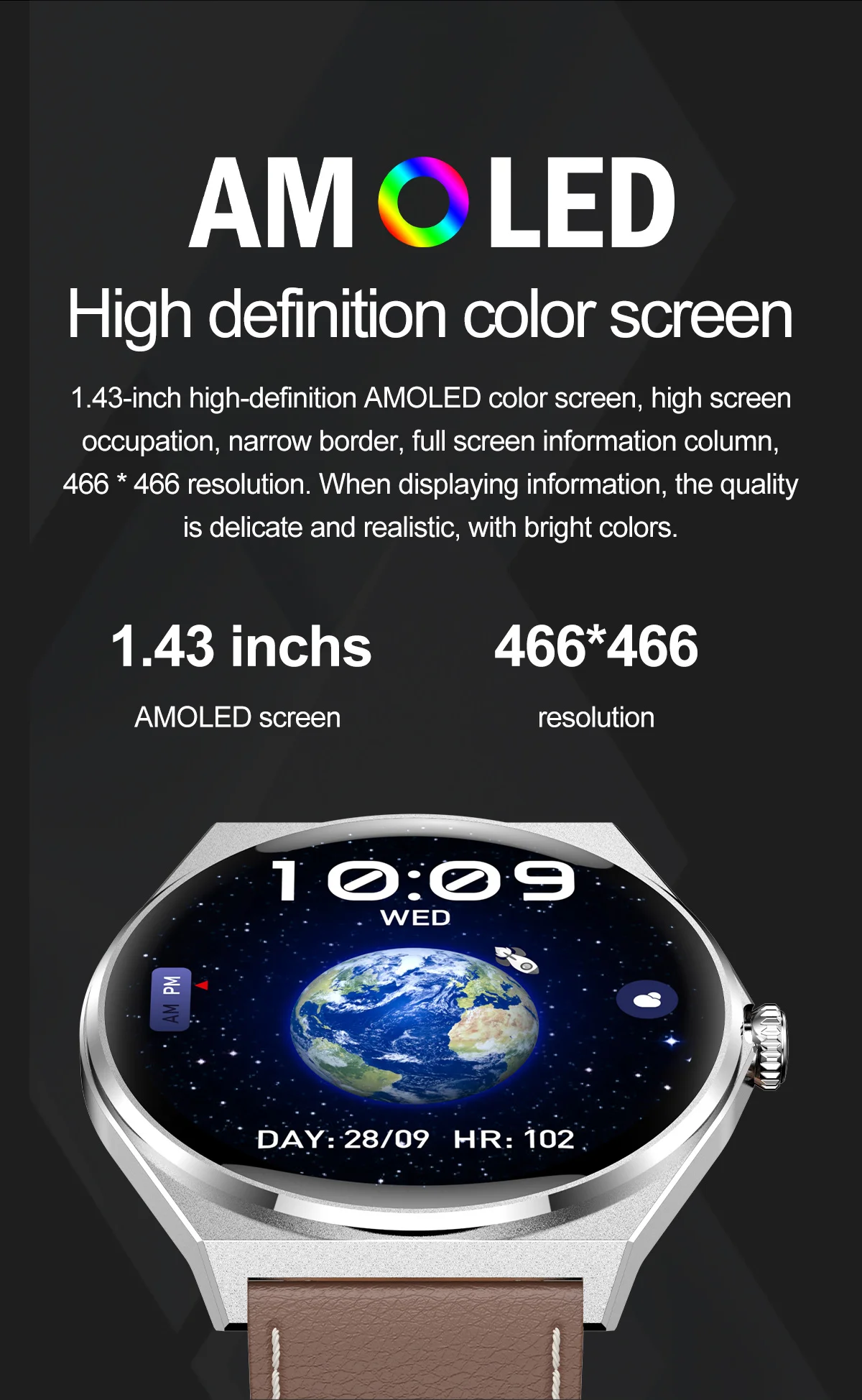 - function5: 1.43-inch AMOLED HD full touch screen