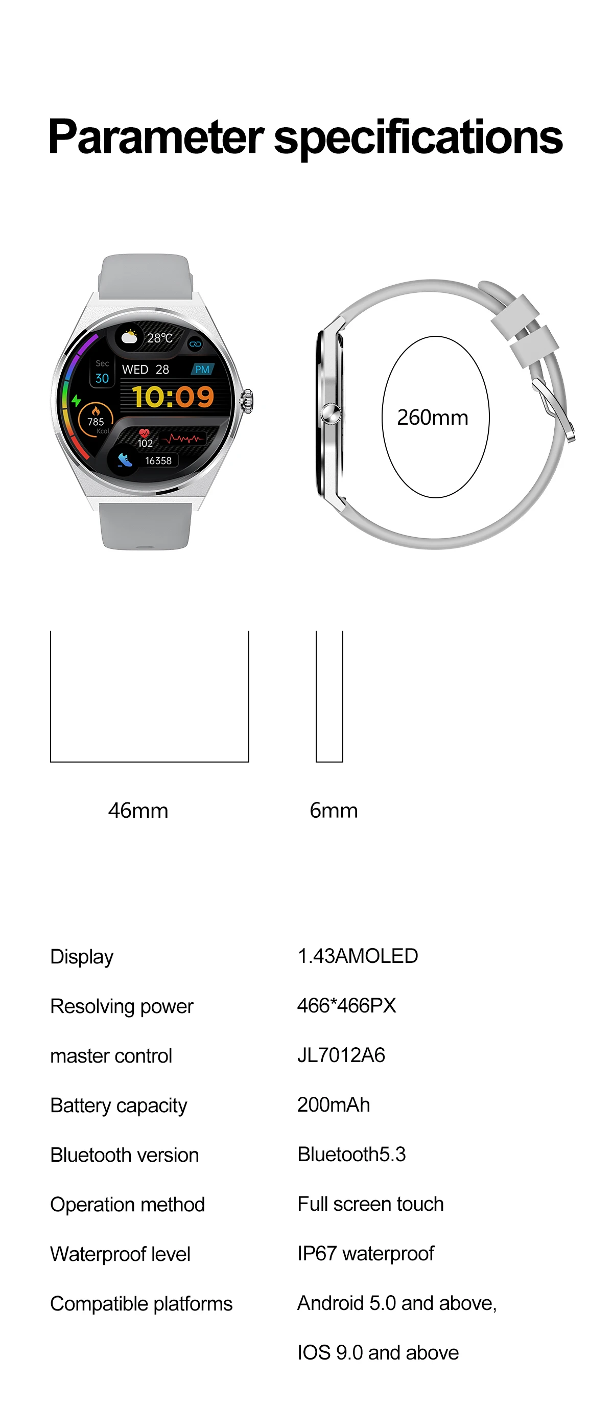 - System: Android Wear,Android OS,iOS