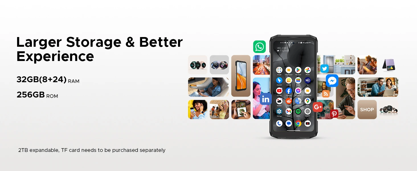 32GB RAM (8GB + Up to 24 GB Extended RAM) / LPDDR5 + 256GB ROM |
