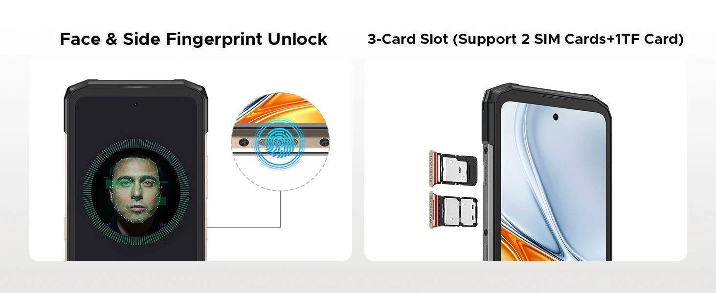3-Card Slot (support 2 SIM Cards+1TF Card)