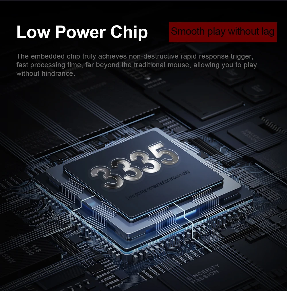 Ultra-persistent core-equipped with PAW3335 optical pixel sensor, in dual mode, the mouse consumption is greatly reduced by 1000Hz. With 1000 mAh rechargeable battery, the mouse will let you play for up to 45 hours (eco-friendly mode)!