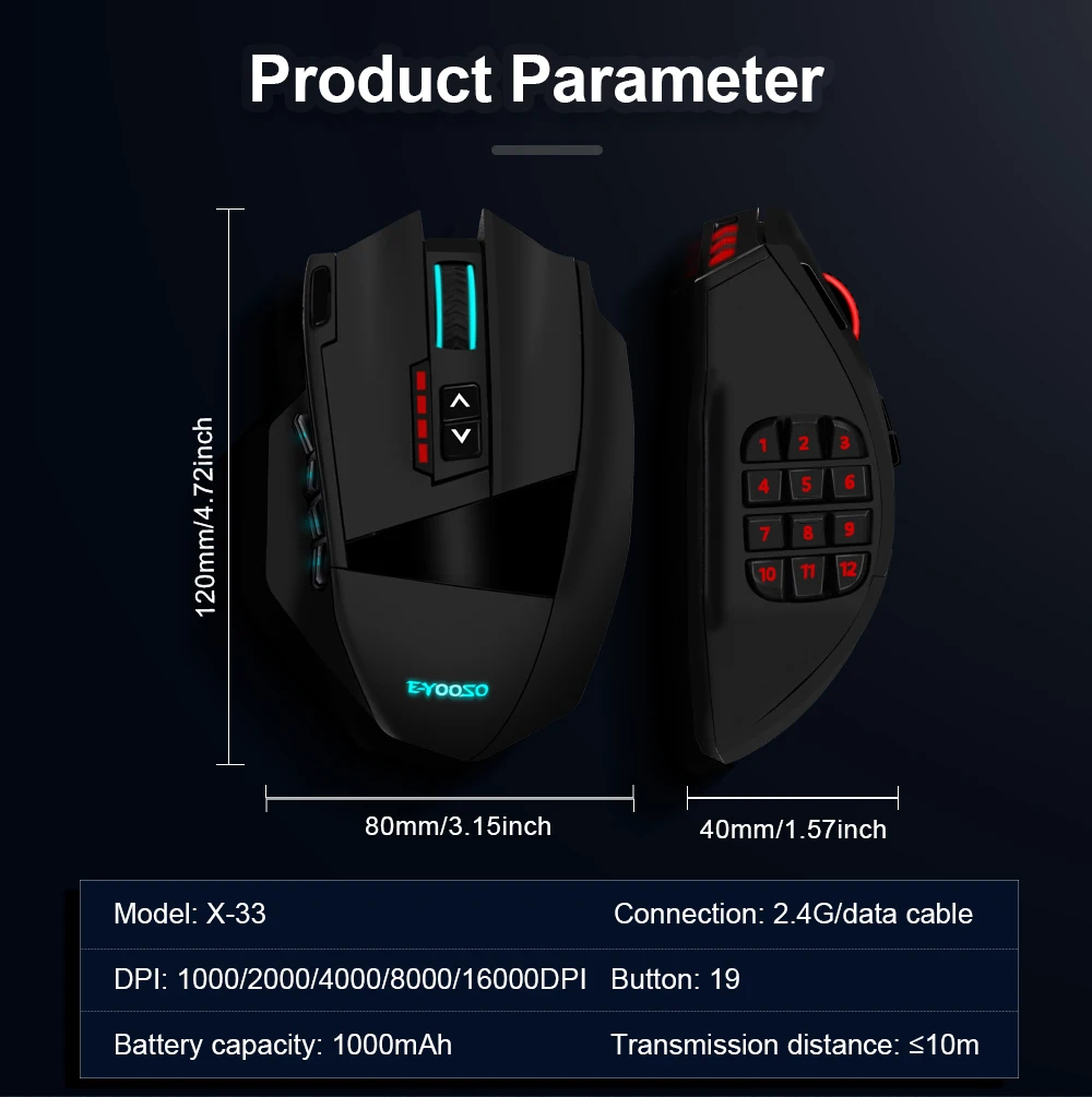 12 programmable side buttons for MMO gaming ,Up to 16000DPI ,40G Acceleration.