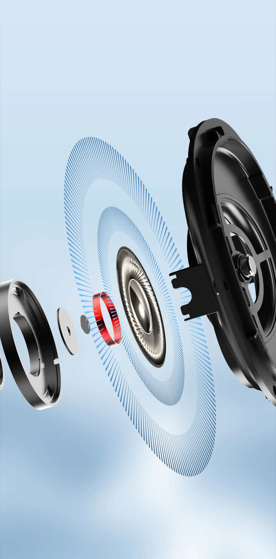40mm dynamic drivers feature an ultra-thin PET diaphragm reinforced with a titanium coating—delivering exceptional sensitivity for deep, punchy bass while maintaining the rigidity needed for clear, detailed highs. This combination ensures WH950NB delivers a perfectly balanced sound with rich mids, powerful lows, and sparkling highs.