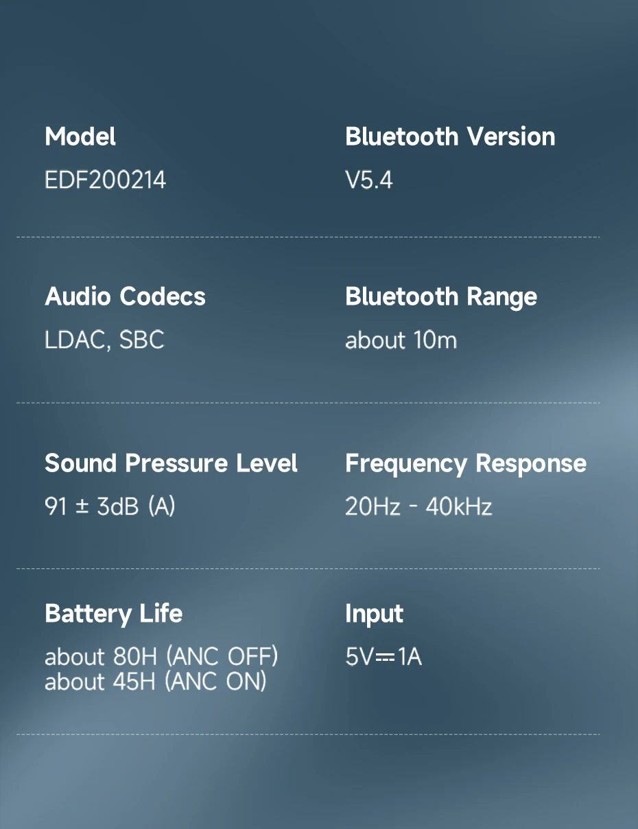 * The battery life data was obtained in the Edifier Lab by testing with SBC decoding and 50% volume. Actual experience may vary slightly depending on the testing environment, equipment,volume, and audio file.