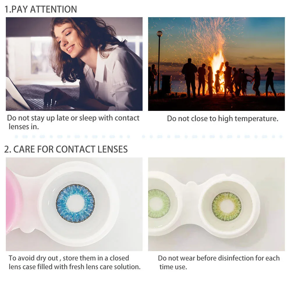 2.Do not lend, borrow or share used contact lenses, otherwise, it may lead to infection or even blindness to eyes.