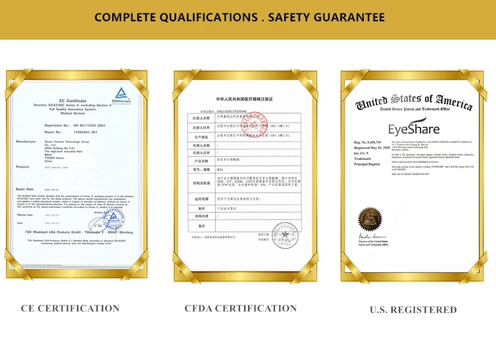 *A:Yes, We are professional in the cosmetic contact industry for 20 years. To make sure your safety, all of our contacts are carry CE mark, conforming to international qualitative medical standards.