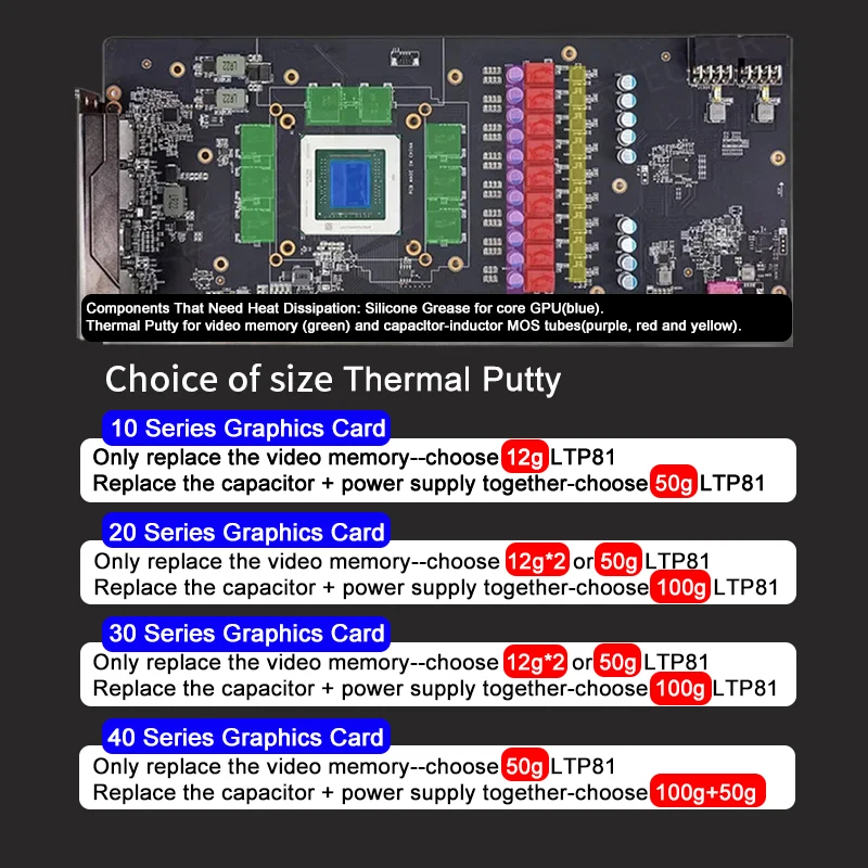 All LTP81 thermal putty undergoes strict quality testing to ensure consistent performance, durability, and compatibility with electronic components—your reliable choice for heat management.18W/m.K high thermal conductivity: solves the “high power” problem of CPU/GPU, slow heat dissipation, and “LED driver overheating” problem – absorbs heat 50% faster than ordinary thermal grease, maintaining the stability of high-performance components (such as gaming GPU, server CPU).
