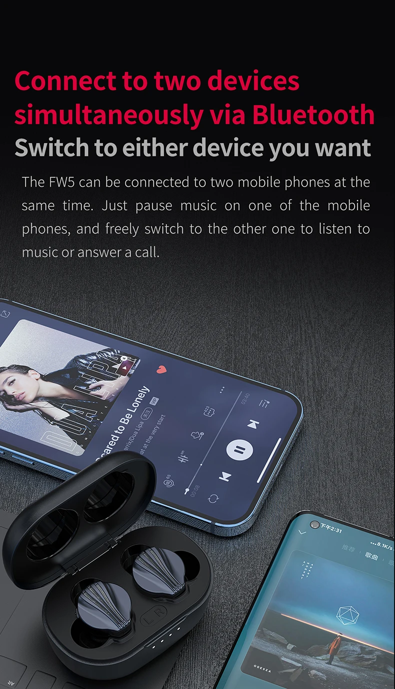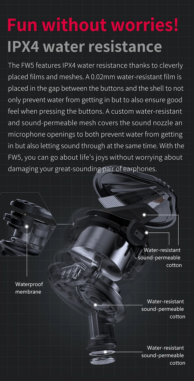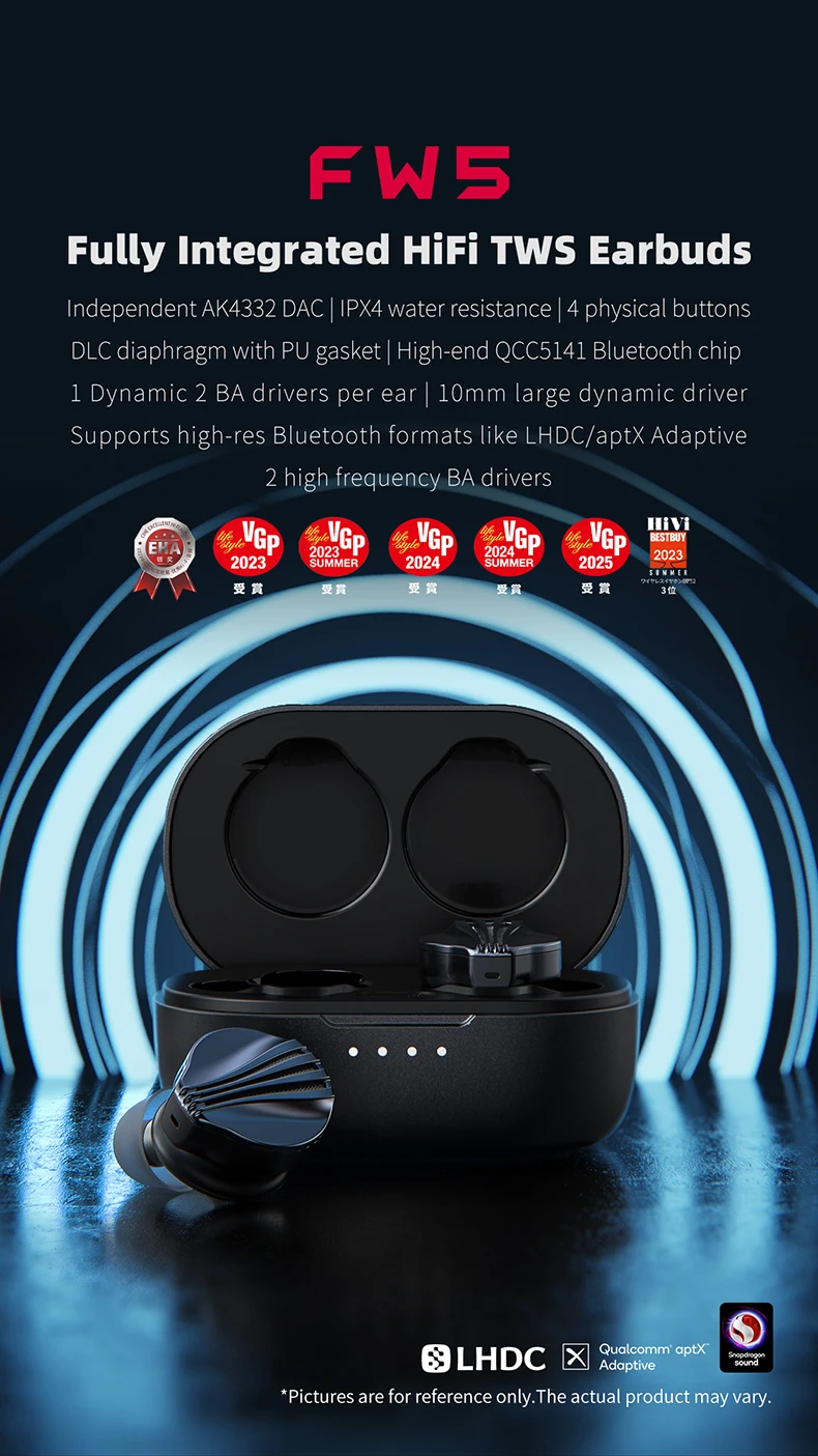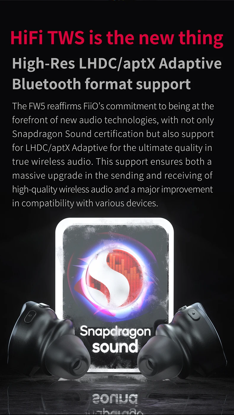 FiiO FW5 TWSWireless Bluetooth LHDC/aptX adaptive Earphones Sport Stereo HiFi Music Earbuds 10mm Dynamic Driver Earphone