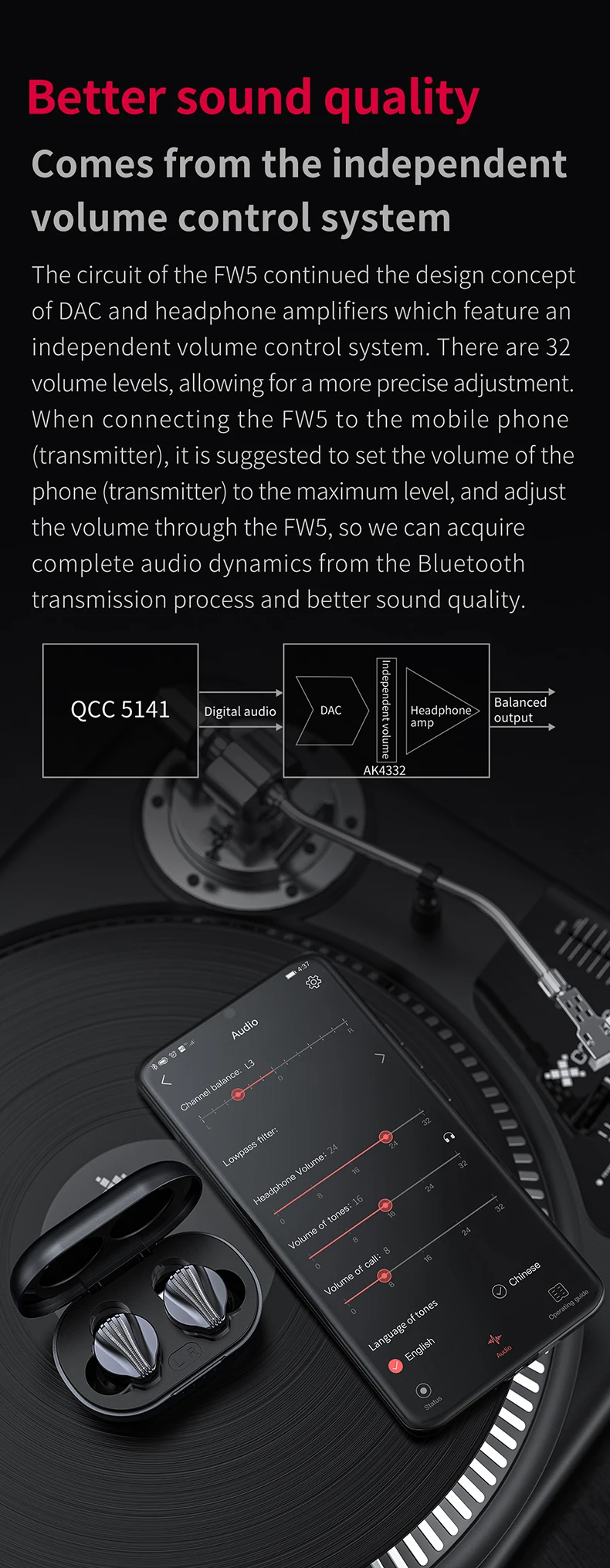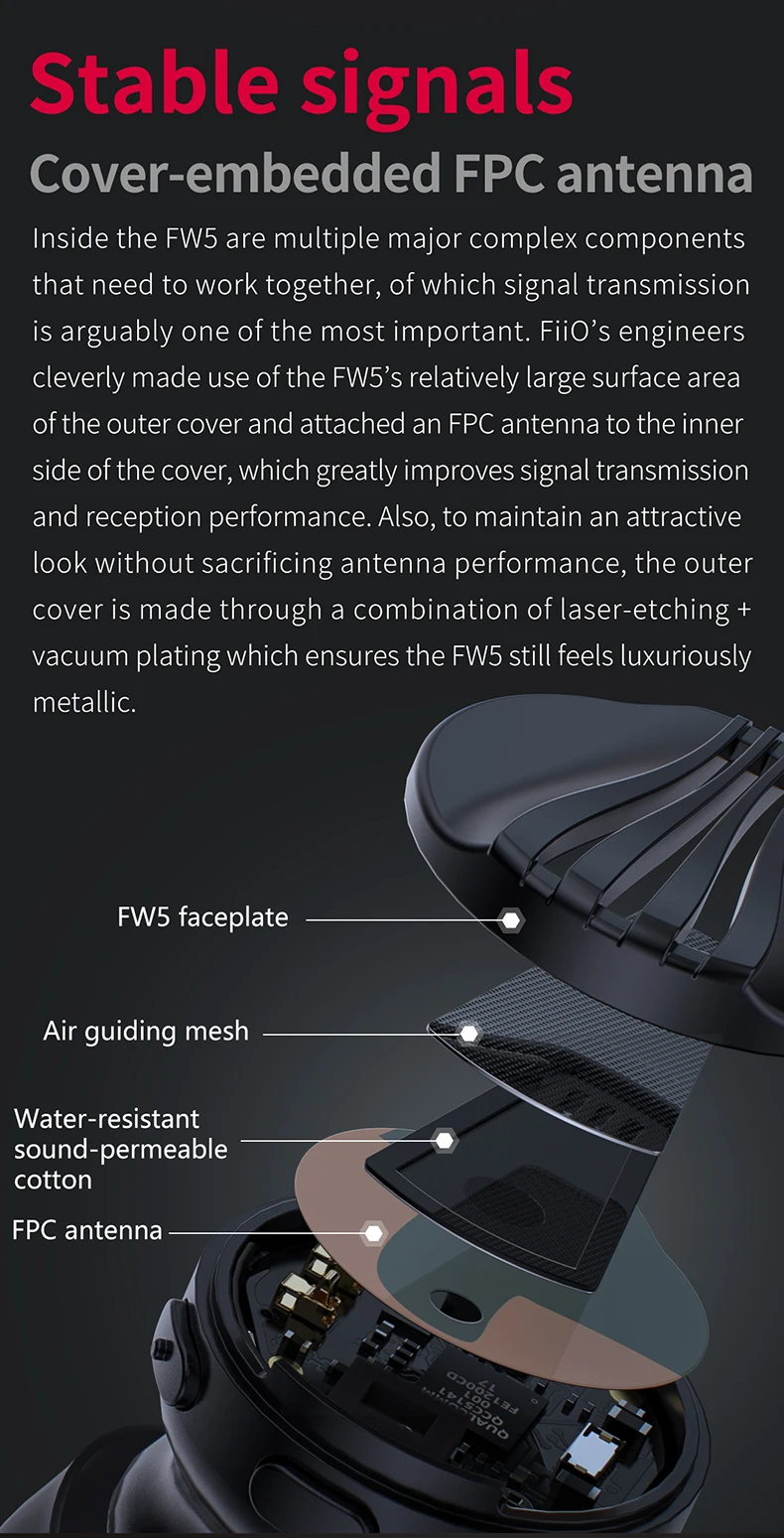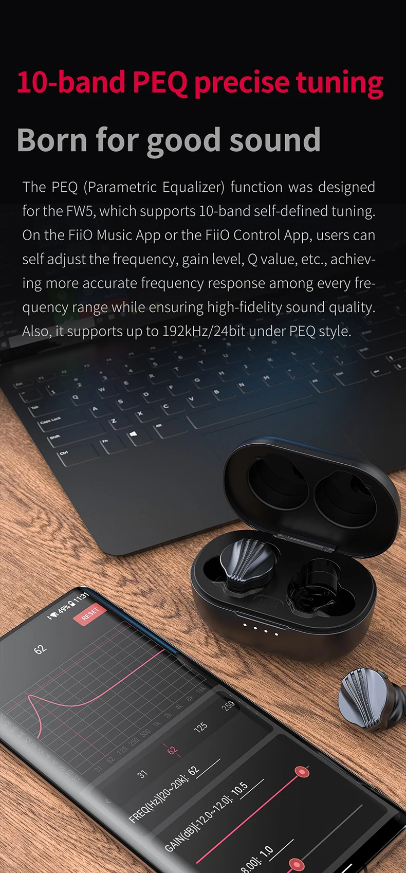 FiiO FW5 TWSWireless Bluetooth LHDC/aptX adaptive Earphones Sport Stereo HiFi Music Earbuds 10mm Dynamic Driver Earphone