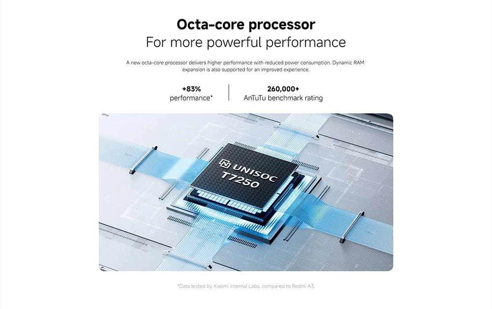 1.8 GHz Octa-Core UNISOC T7250 12nm processor with Mali-G57 MP1 GPU