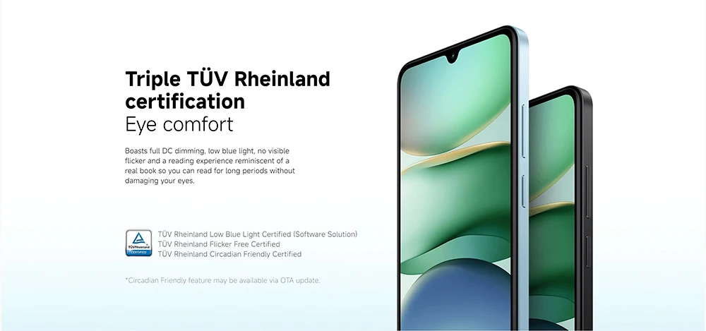 6.88-inch (1640×720 pixels) HD + IPS LCD screen with 120Hz refresh rate, 240Hz touch sampling rate, TUV Rhineland-certified eye protection, DC dimming