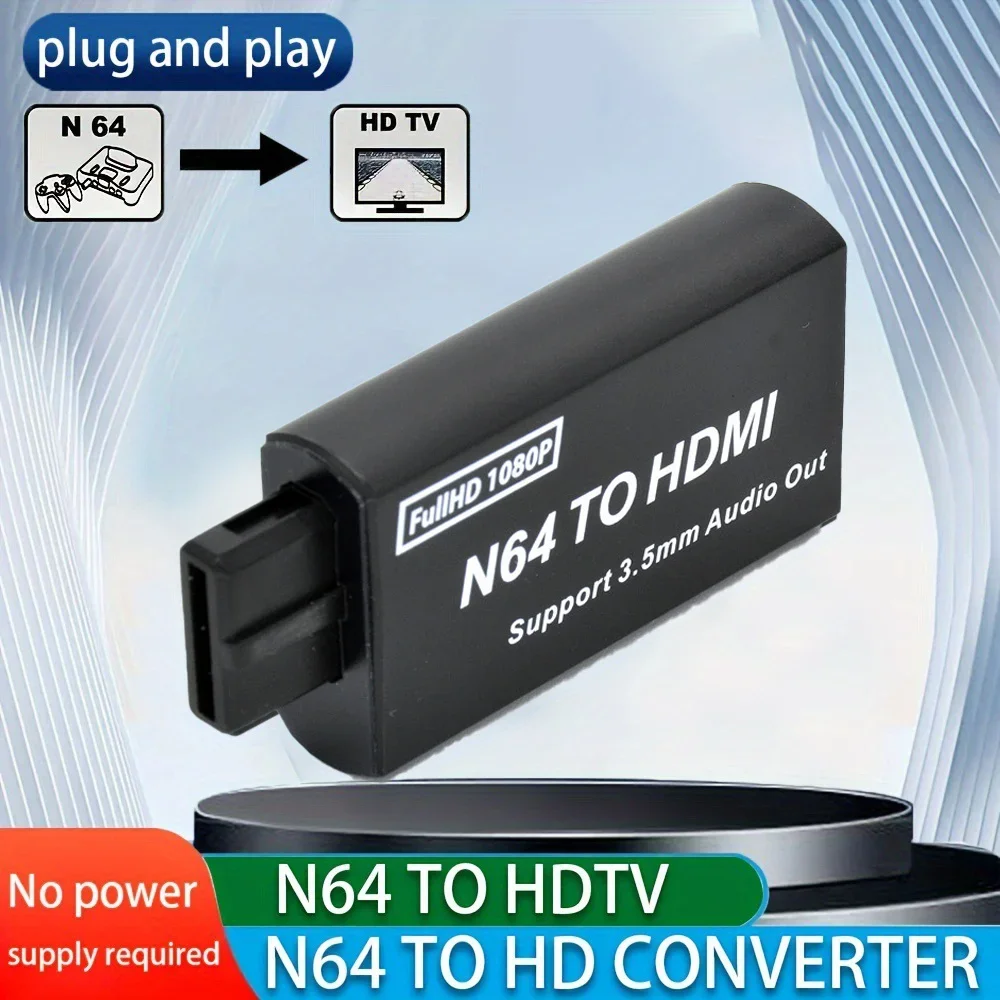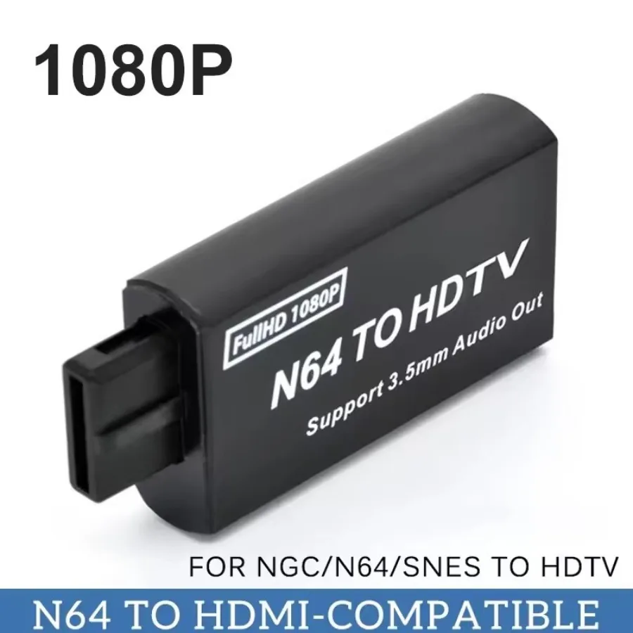 The HDMI-compatible adapter for N64/NGC/SNES outputs all HDMI-compatible digital format (1080P) audio and video, supports for N64/NGC/SNES display mode (PAL/NTSC), a single HDMI-compatible cable can be plug and play, lifelike live TV /Video/Audio effects on monitor without external power supply.